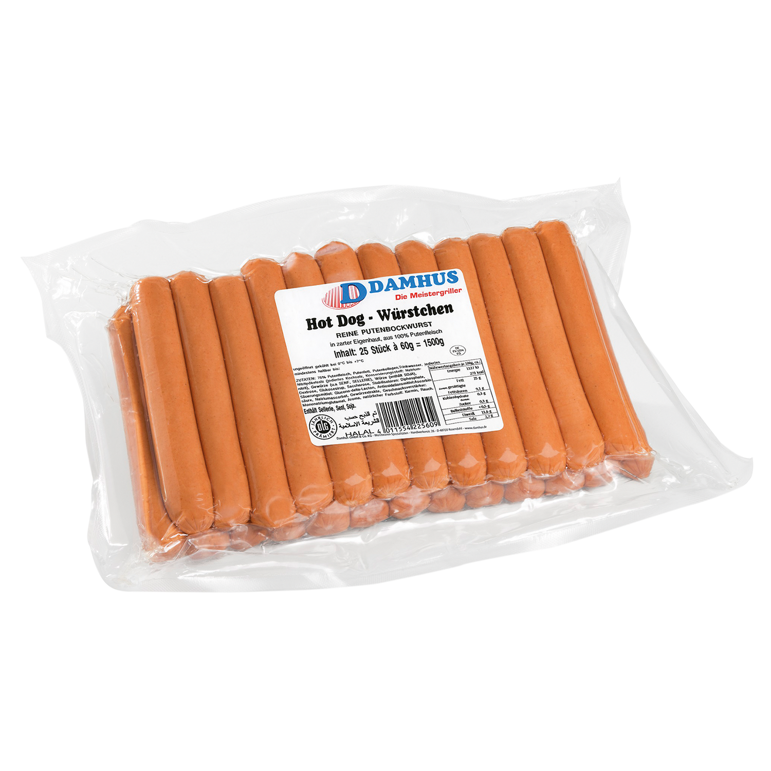Putenbockwurst (Puten Hot-Dog) 25x60g Damhus - Packung ist auf Lager und wird versandt, sobald es wieder verfügbar ist