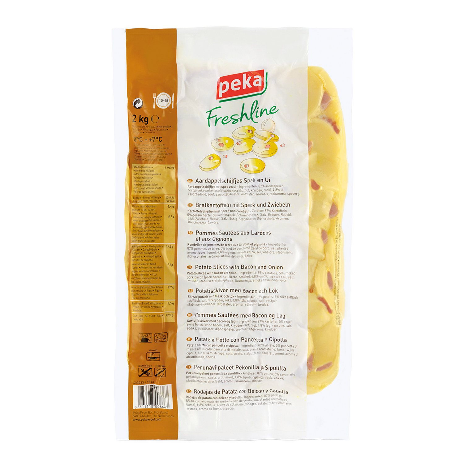 | Verkehrsbezeichnung: | Kartoffelscheiben mit Speck und Zwiebeln, vorgegart |