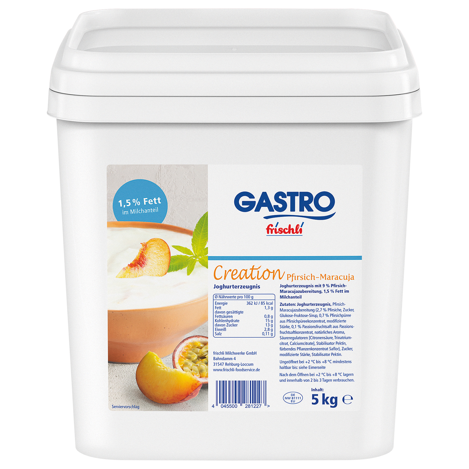 | Verkehrsbezeichnung: | Joghurterzeugnis mit 9% Pfirsich-Maracujazubereitung, 1,5% Fett im Milchanteil. |