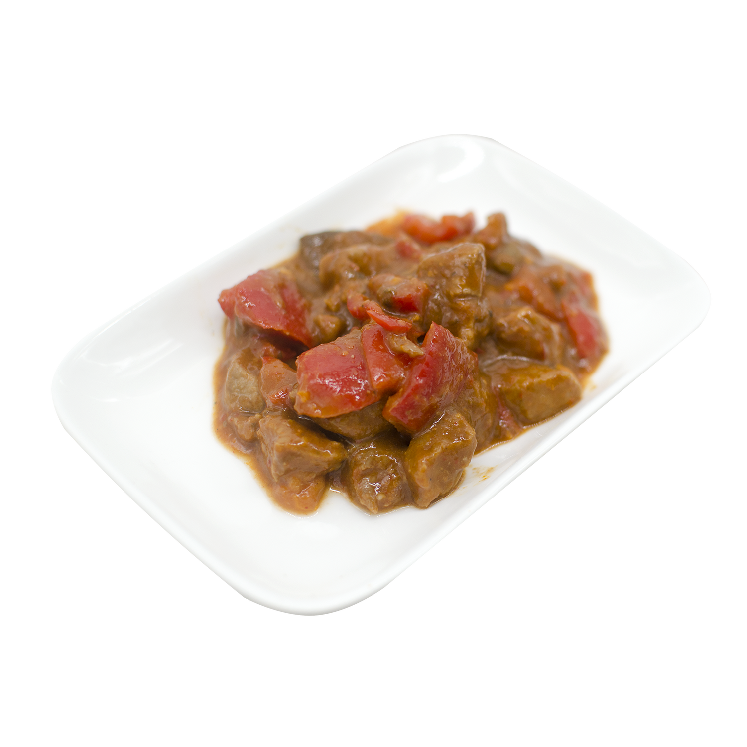| Zutatenliste | Rindfleisch 50 %, Zwiebeln gebraten (Zwiebeln, Rapsöl), Paprika rot gewürfelt, SOJAsauce glutenfrei (Wasser, SOJABOHNEN, Speisesalz, Branntweinessig), Tomatenmark (Tomaten, Salz), Trinkwasser, Stärke, Zucker, Gewürze, Jodsalz (Salz, Kaliumiodat). |