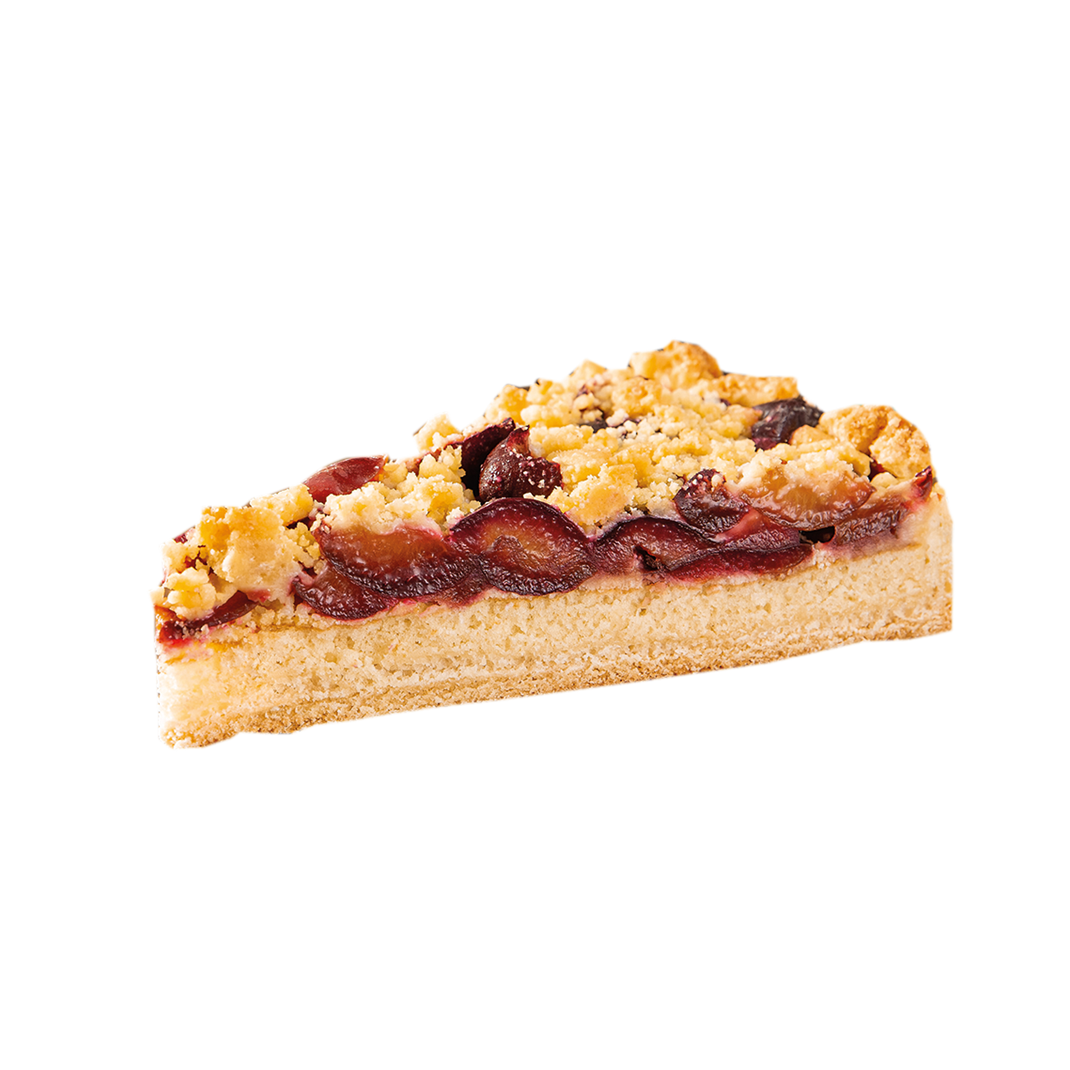 | Verkehrsbezeichnung: | Mürbeteigboden, hierauf ein Heferührteig- und Rührteigboden, mit Mürbeteigbröseln bestreut und Pflaumen belegt, mit Butterstreuseln (10%) bedeckt, tiefgefroren, geviertelt. |