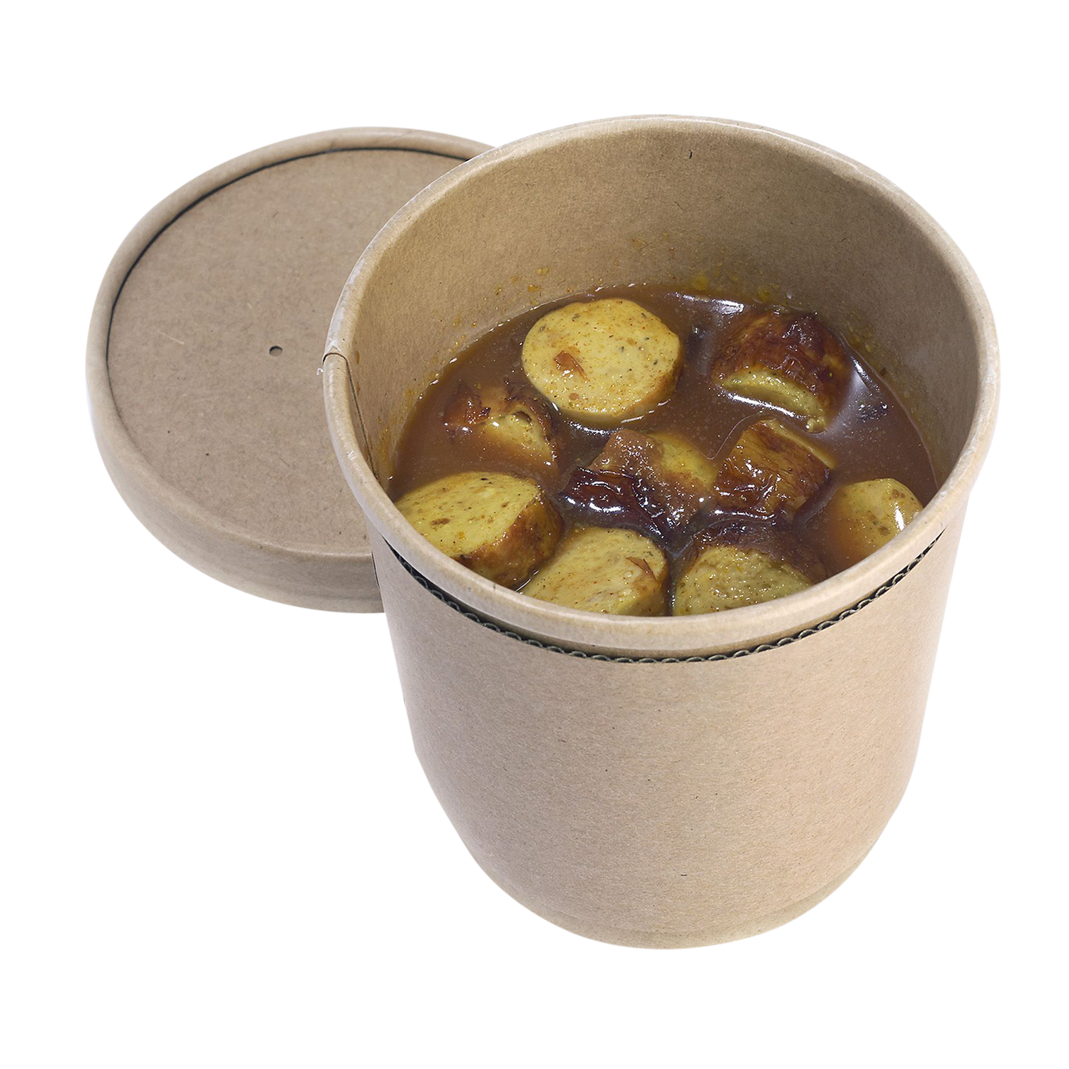 Zutaten Zutaten: 50% Currywurst Scheiben (Schweinefleisch, Speck, Wasser, Salz, Gewürze, Stabilisator: E451; Traubenzucker, Glucosesirup, Kräuter, Gewürzextrakte, Rapsöl), 50% Currysauce (Tomatenmark, Wasser, Zucker, Branntweinessig, Apfelsaft, Rapsöl, modifizierte Maisstärke, Zwiebeln, Salz, 1,6% Curry).
