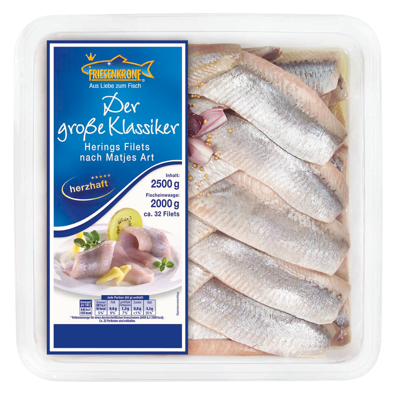 Heringsfilet nach Matjes Art MSC 2,5kg ca.29Stk Friesenkrone - Karton à 2 SC ist auf Lager und wird versandt, sobald es wieder verfügbar ist
