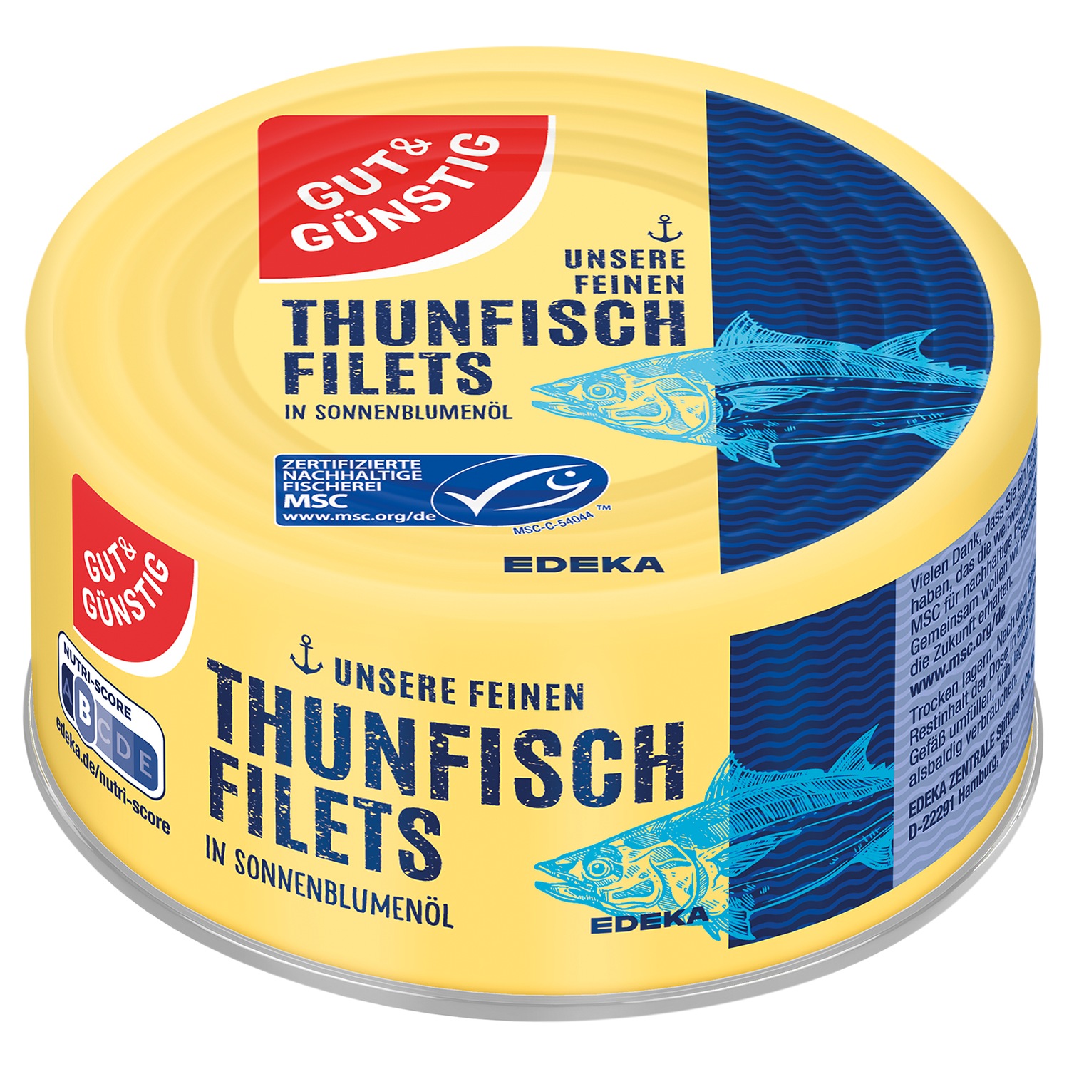 Thunfisch Filets MSC in Sonnenblumenöl 195g/140g G&G