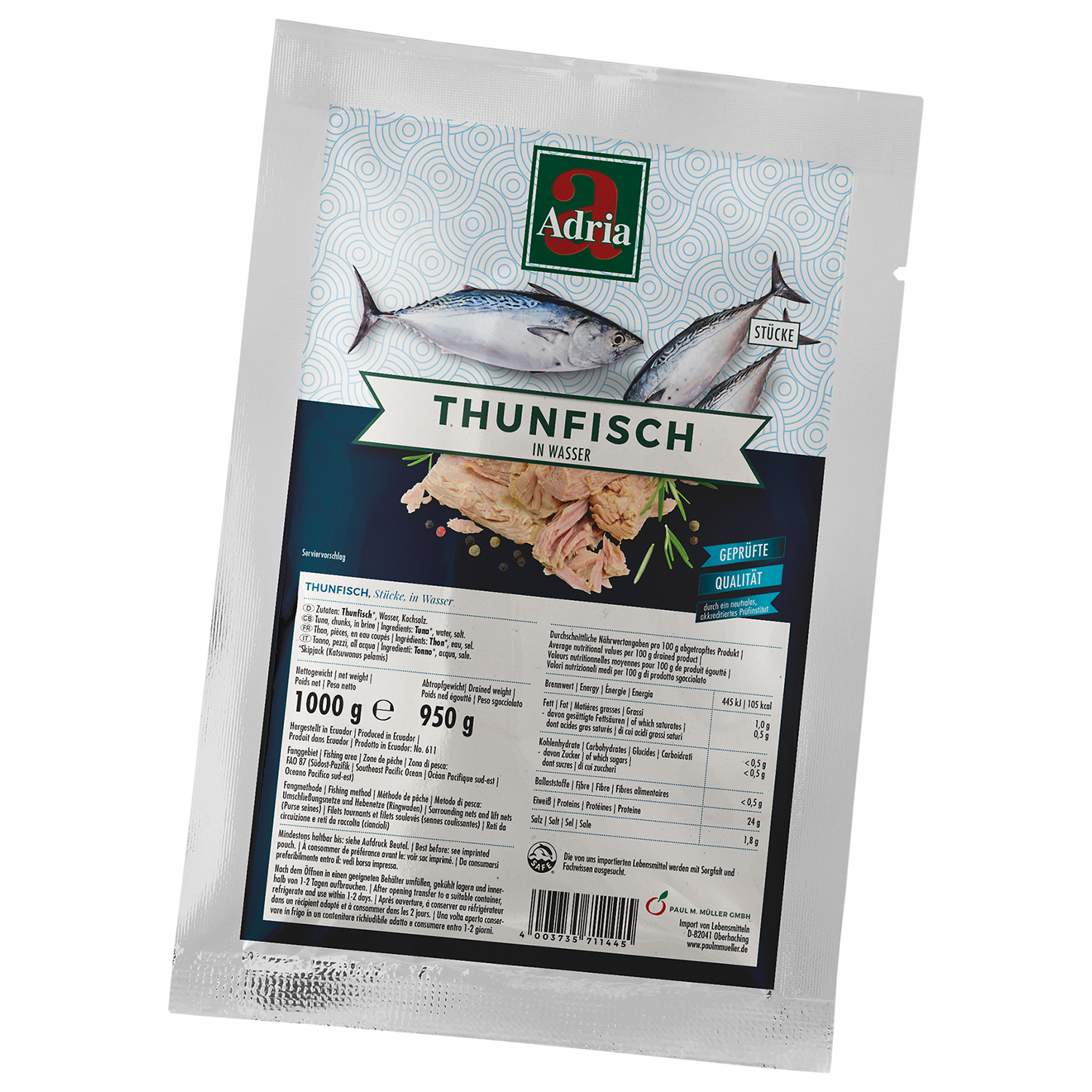 Thunfisch Chunks(Stücke) Wasser 1kg Adria - Karton à 16 BT ist auf Lager und wird versandt, sobald es wieder verfügbar ist