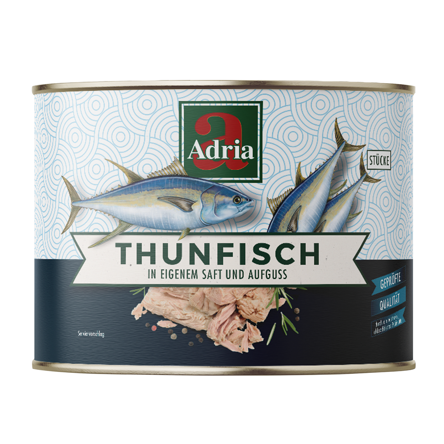Thunfisch in eig Saft 1,705kg/1,26kg Adria - Karton à 6 DS ist auf Lager und wird versandt, sobald es wieder verfügbar ist