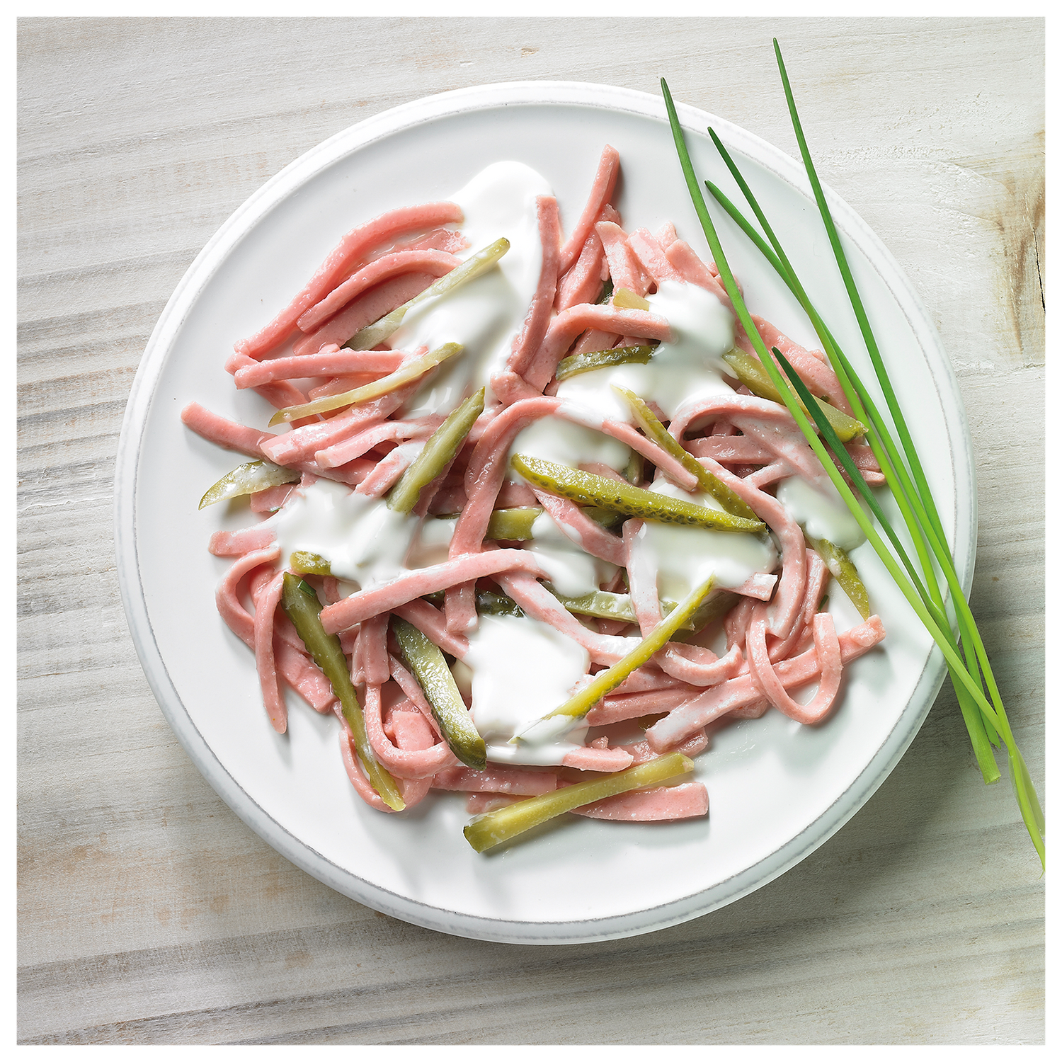 | Zutatenliste | Zutaten: Lyoner 45 % (Schweinefleisch, Speck, Trinkwasser, Speisesalz, Dextrose, Säureregulator: Natriumcitrate, Maltodextrin, Gewürze, Antioxidationsmittel: Ascorbinsäure, Farbstoff: Echtes Karmin), Rapsöl, Gurken, Trinkwasser, Zucker, Branntweinessig, SAHNE, EIGELB, natürliches Aroma, modifizierte Stärke, Speisesalz, Gewürze, Verdickungsmittel: Guarkernmehl, Xanthan; Säureregulator: Natriumacetate |