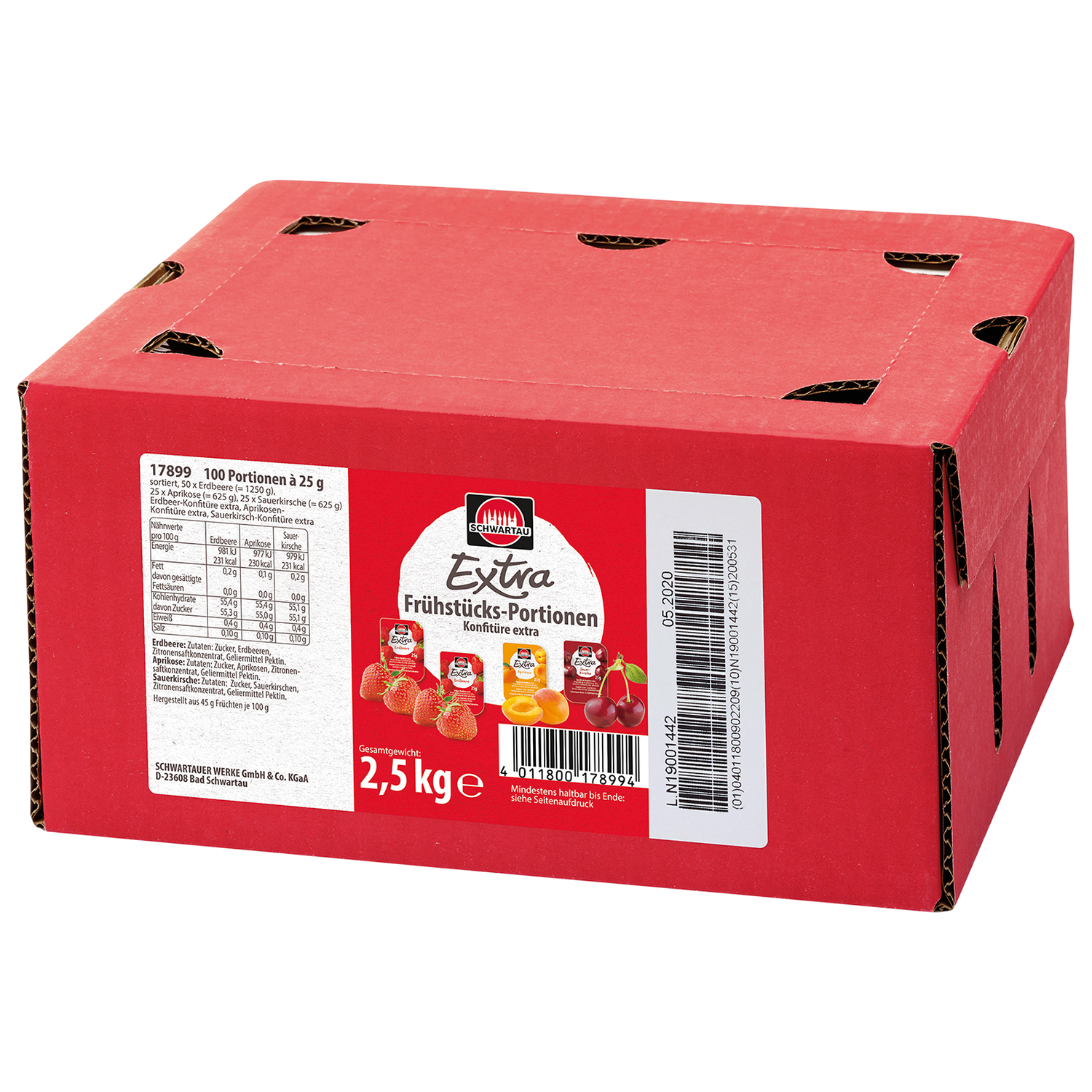 Schwartau Gastrokonfit Extra Erdb,Aprik,Sauerkirsch 100x25g - Karton ist auf Lager und wird versandt, sobald es wieder verfügbar ist