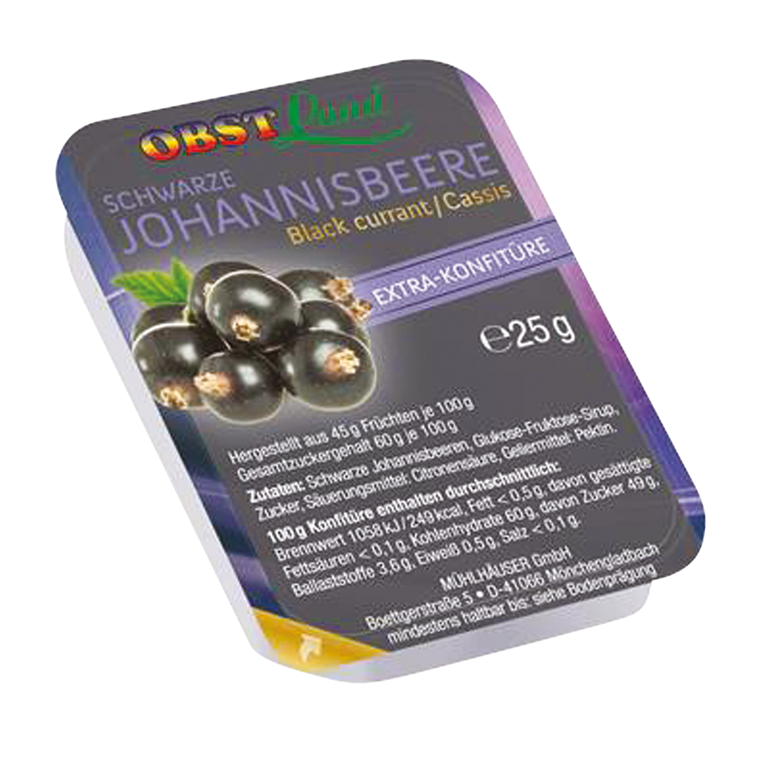 Schwarze Johannisbeer Konfitüre Extra ODZ 100x25g Mühlhäuse - Karton ist auf Lager und wird versandt, sobald es wieder verfügbar ist