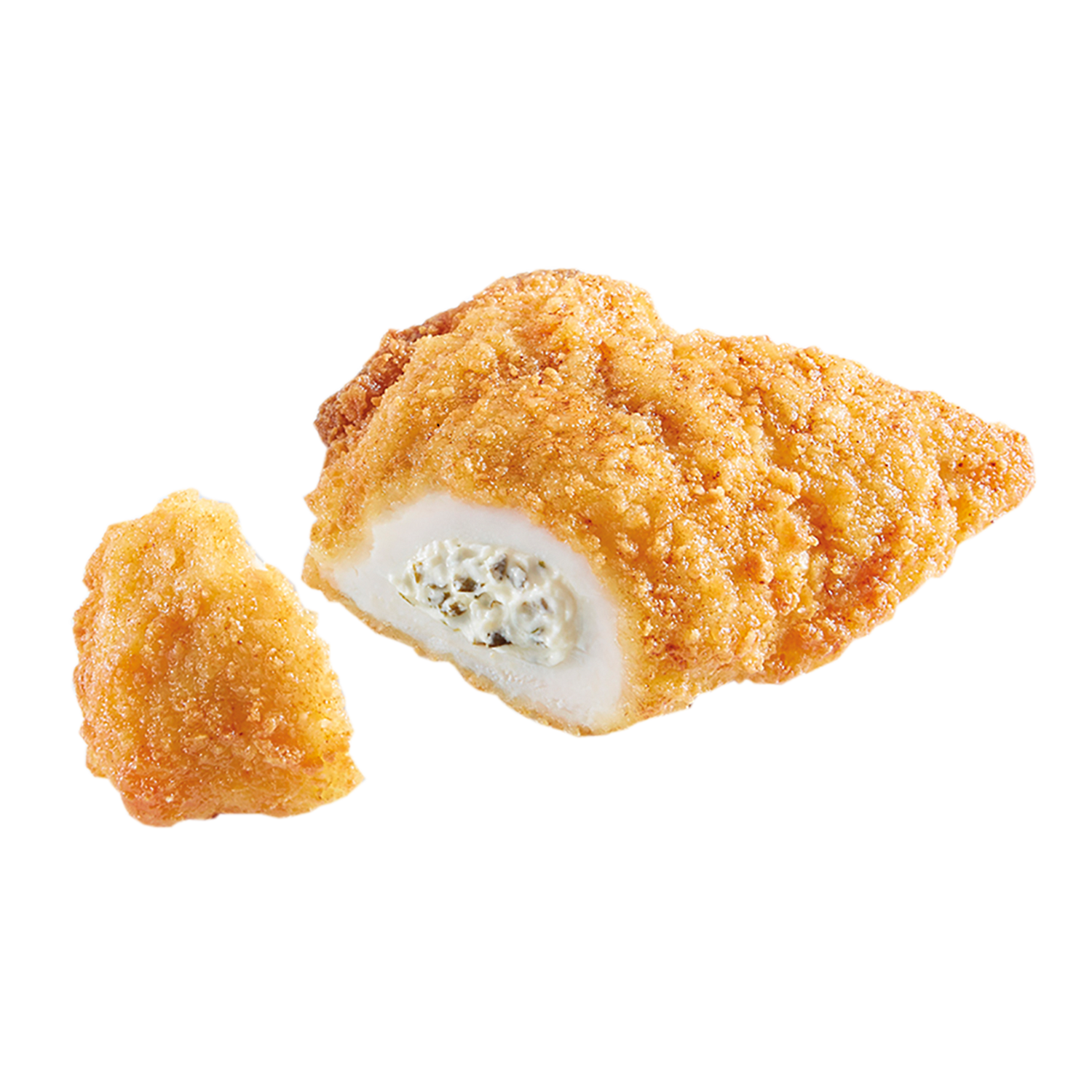 | Zutatenliste | Zutaten: Hähnchenbrustfilet (54%), WEIZENMEHL, Frischkäsezubereitung (13%) [Frischkäse (MILCH, Käsereikulturen, mikrobielles Lab), Kräuter, Knoblauch, Speisesalz, Verdickungsmittel (Johannisbrotkernmehl), Gewürze], Wasser, Rapsöl, WEIZENSTÄRKE, Stärke, Speisesalz, Gewürze, Säuerungsmittel (Natriumcitrate), Dextrose, Hefe, Gewürzextrakte. |