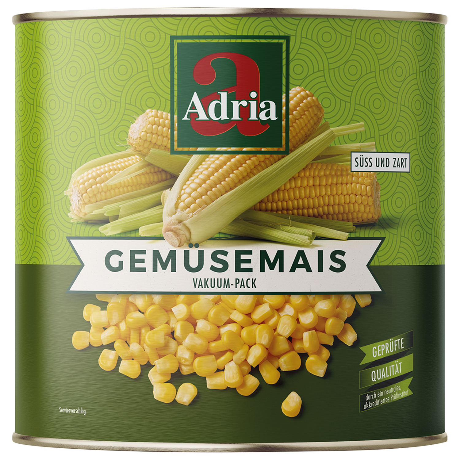 Gemüsemais Vakuum-Pack 2,125kg/1,84kg Adria - Karton à 6 DS ist auf Lager und wird versandt, sobald es wieder verfügbar ist