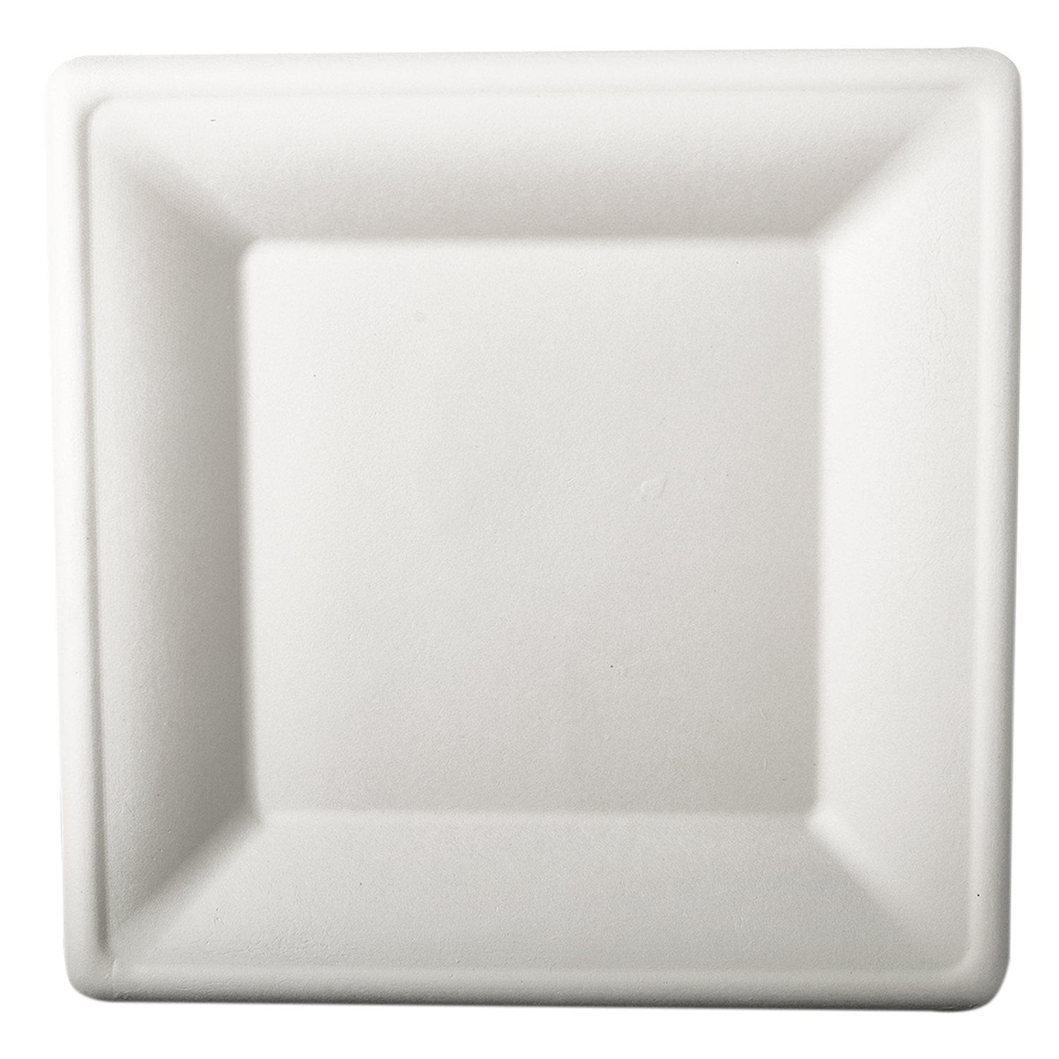 Stabile Teller aus Zuckerrohr Eigenschaften: - Quadratische Form - Außenmaß: 26 x 26 cm - Innenmaß: 16 x 16 cm - mikrowellengeeignet bis 100 Grad ( maximal 5 Minuten ) - kompostierbar in industriellen Anlagen nach DIN EN 13432.