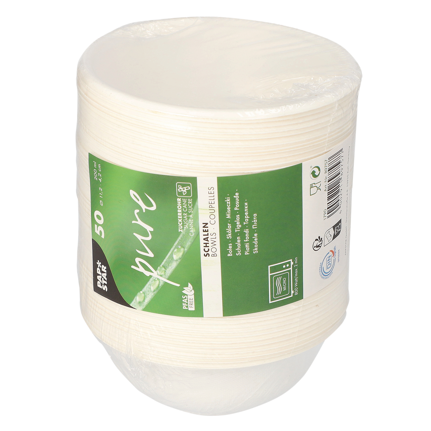 Zuckerrohrschale pure weiß 200ml 50 Stück Papstar
