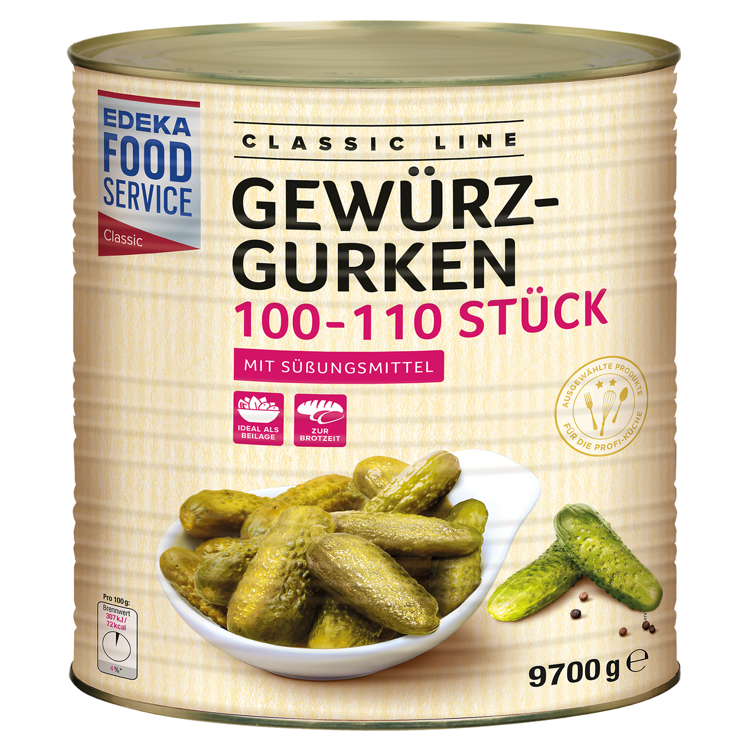 | Verkehrsbezeichnung: | Gewürzgurken mit Süßungsmittel, 100-110 Stück. |