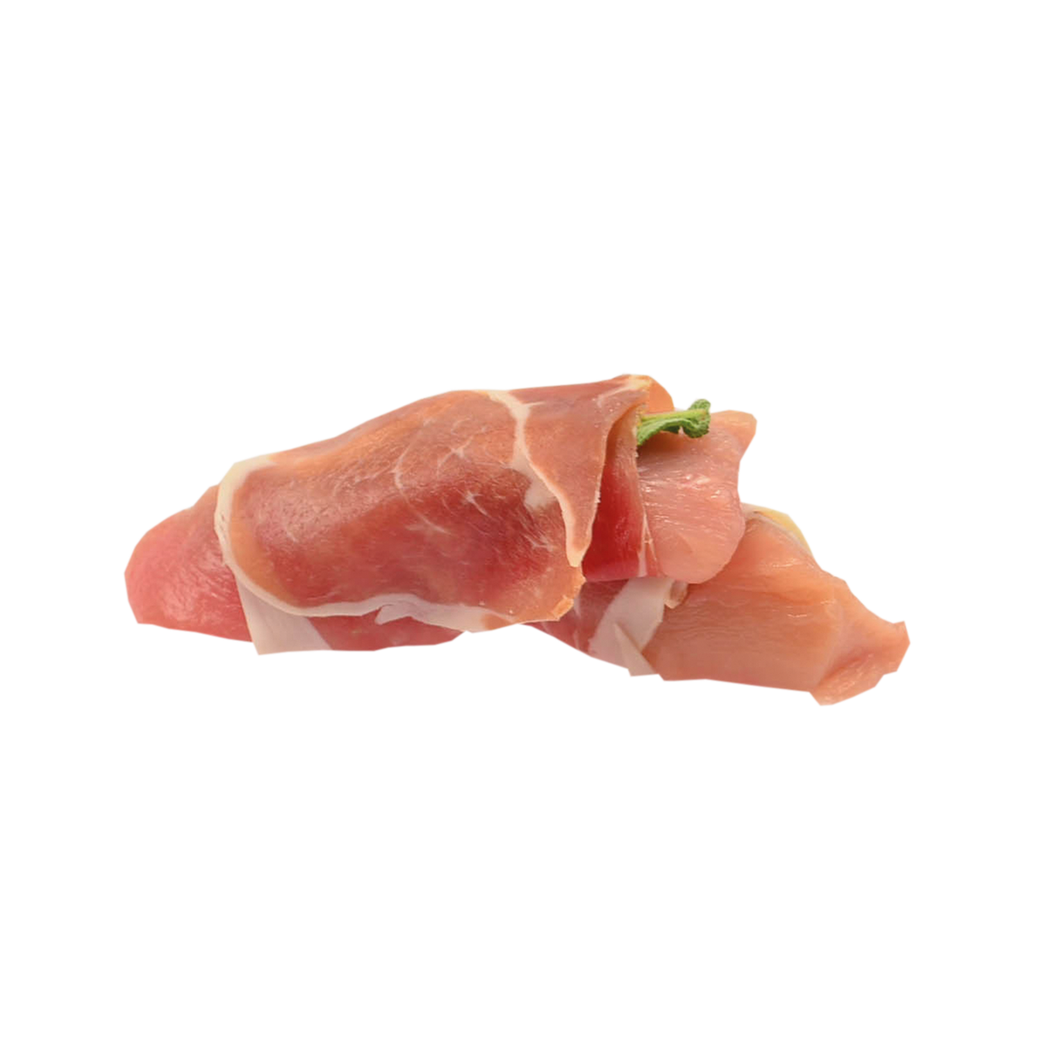 Mit Salbeiblatt, eingerollt in rohen Schinken.