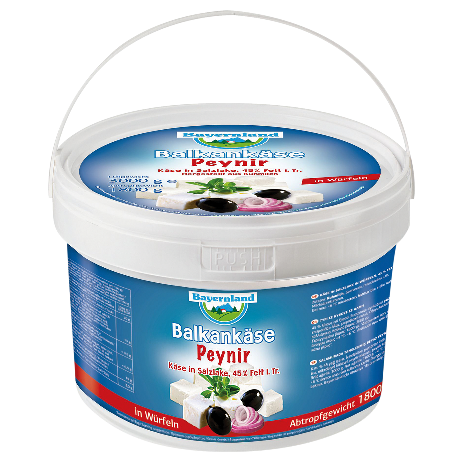 Balkankäse Würfel 45% F.i.Tr. 1,8kg Bayernland - Eimer ist auf Lager und wird versandt, sobald es wieder verfügbar ist