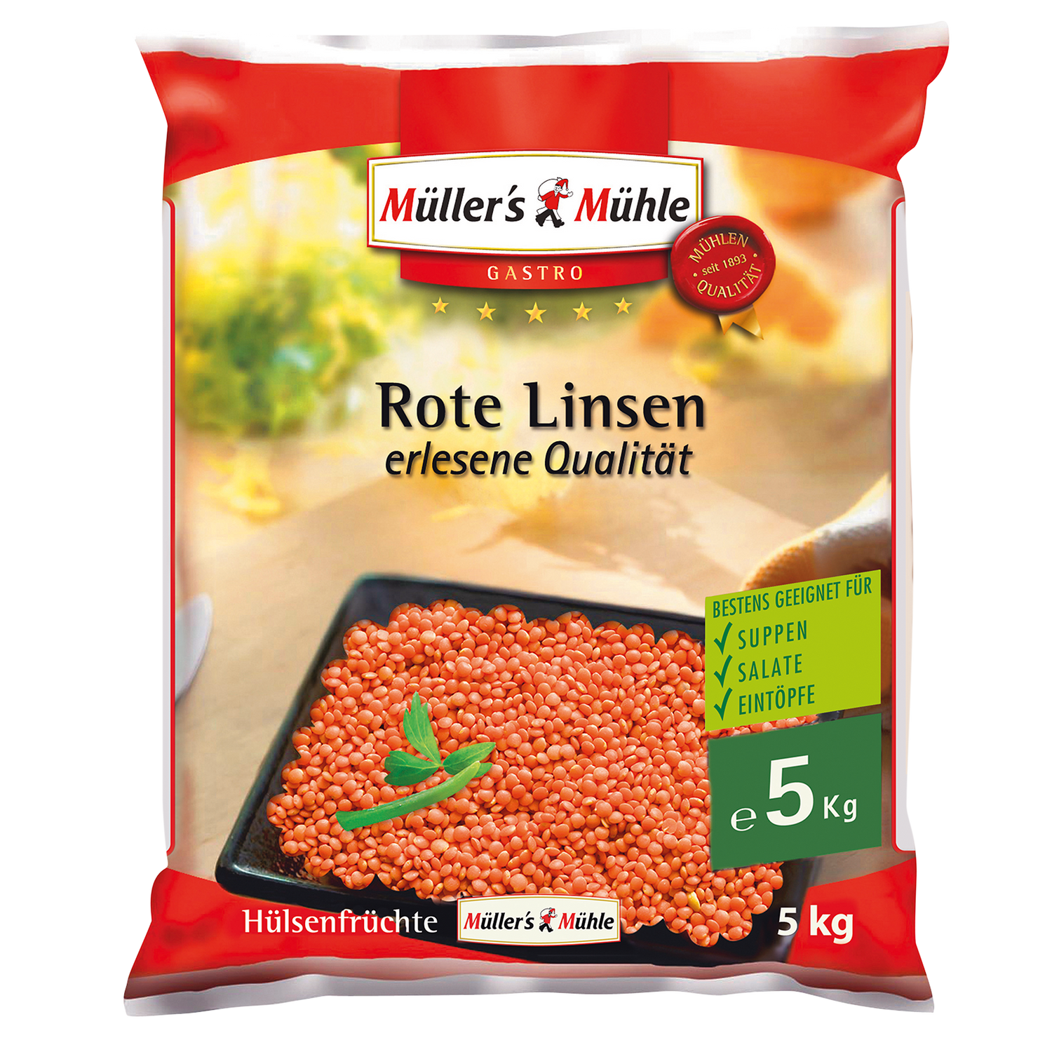 Rote Linsen Geschält ODZ 5kg Müller's Mühle - Beutel ist auf Lager und wird versandt, sobald es wieder verfügbar ist