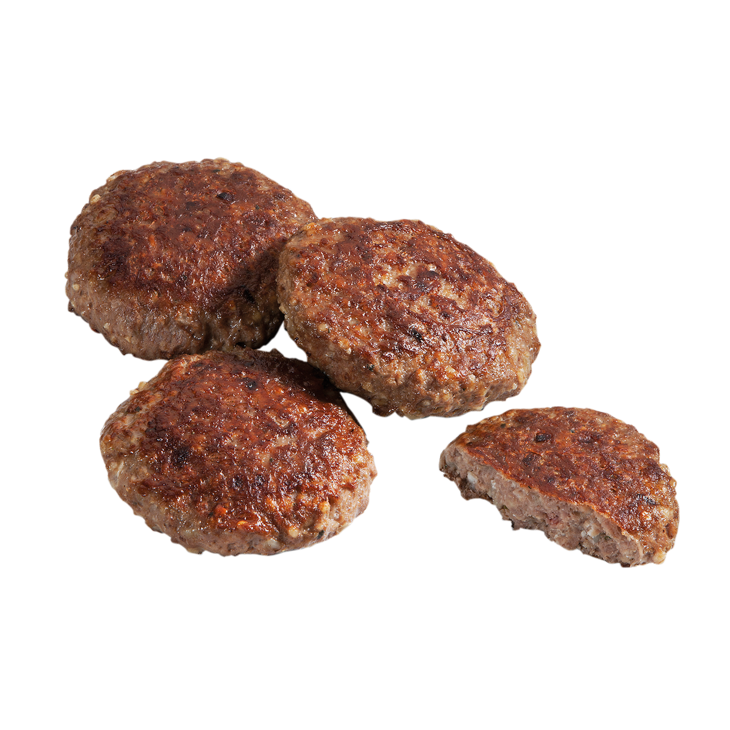 | Verkehrsbezeichnung: | Rindfleischfrikadelle, ohne Zwiebeln, mild gewürzt, ohne Fett gebraten, I.Q.F. tiefgefroren, 80 x ca. 80 g |