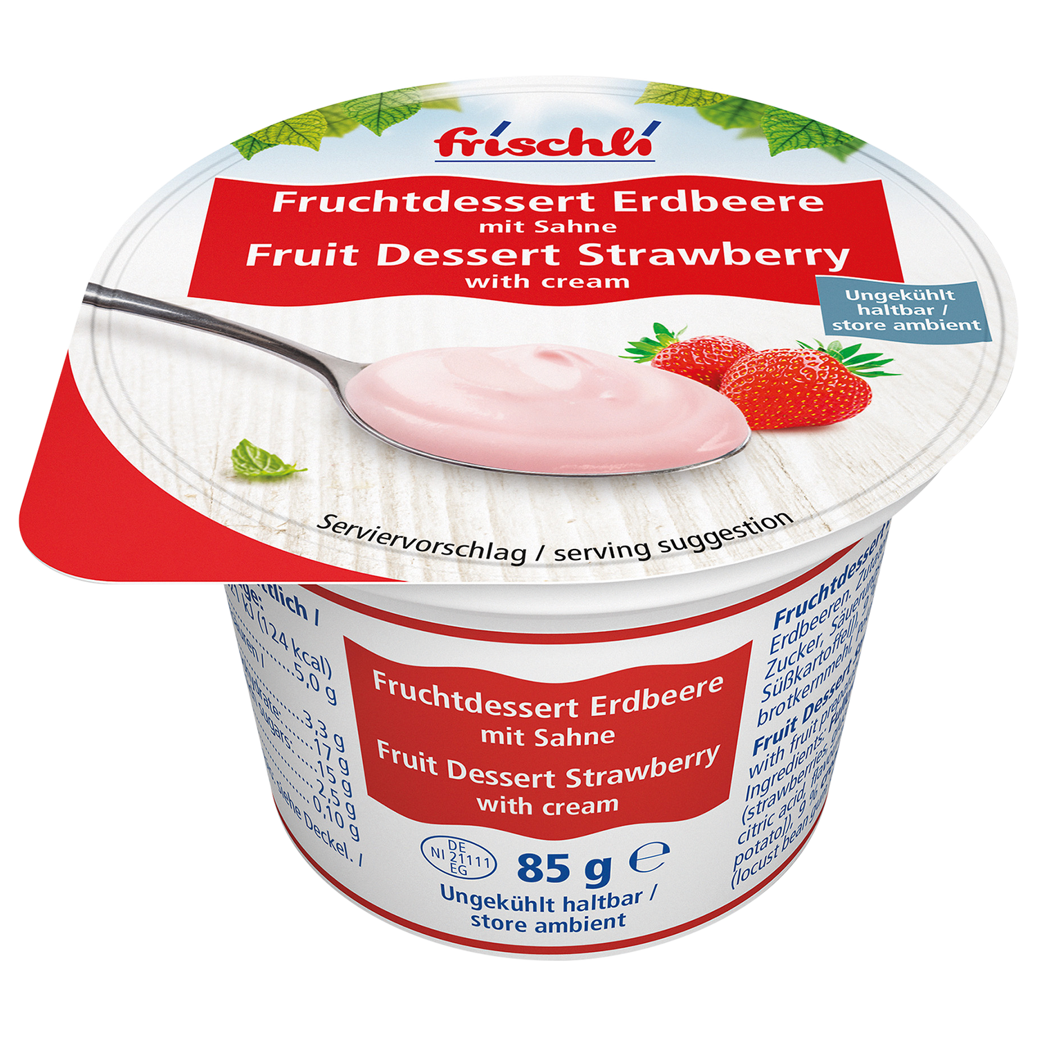 | Verkehrsbezeichnung: | Pudding mit Fruchtzubereitung Erdbeer, 5,3% Erdbeeren |