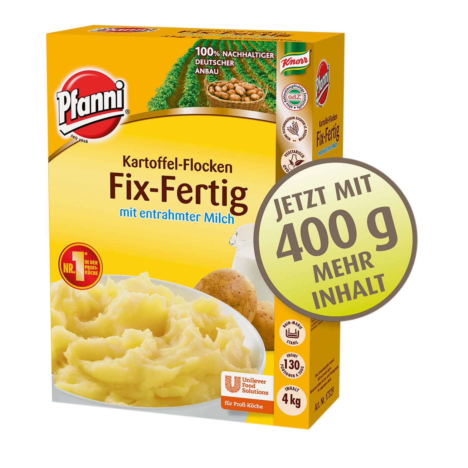 Fix und Fertig Püree ODZ 130 Portionen 4kg Pfanni - Packung ist auf Lager und wird versandt, sobald es wieder verfügbar ist