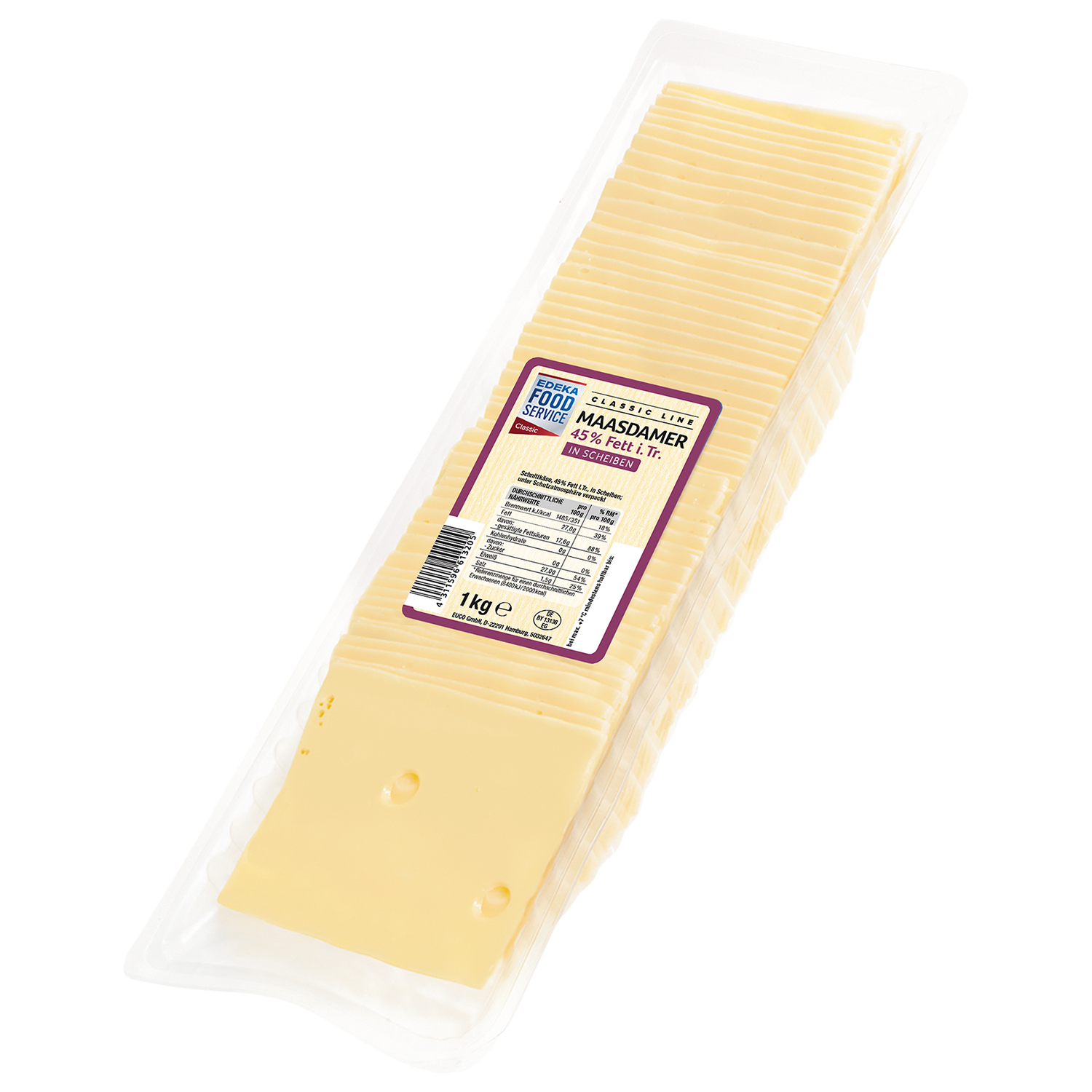 Maasdammer 45% F.i.Tr. gefächert 50x20g 1kg EFS - Karton à 6 PK ist auf Lager und wird versandt, sobald es wieder verfügbar ist