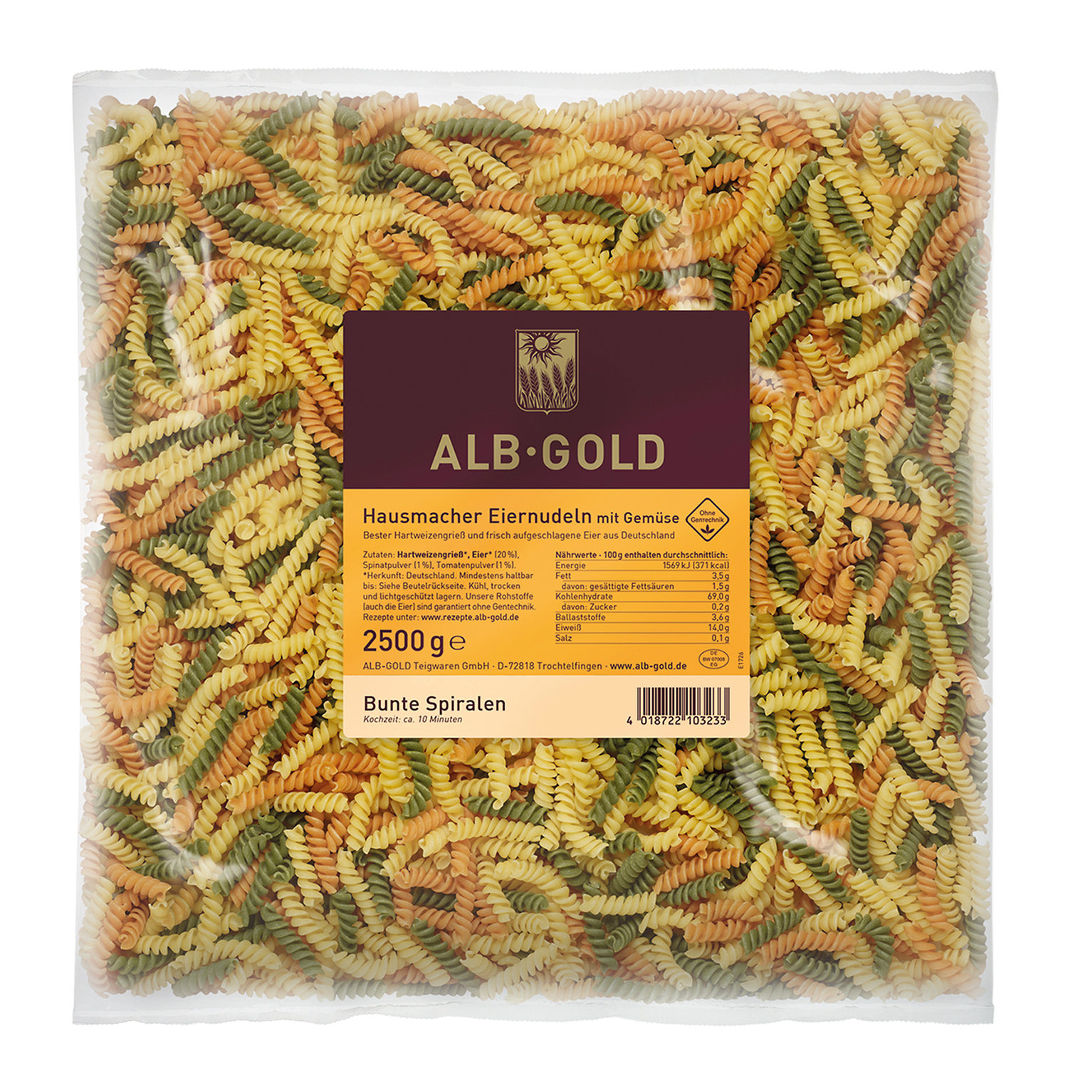 Bunte Spiral Nudeln ODZ 2,5kg Albgold - Karton à 4 BT ist auf Lager und wird versandt, sobald es wieder verfügbar ist
