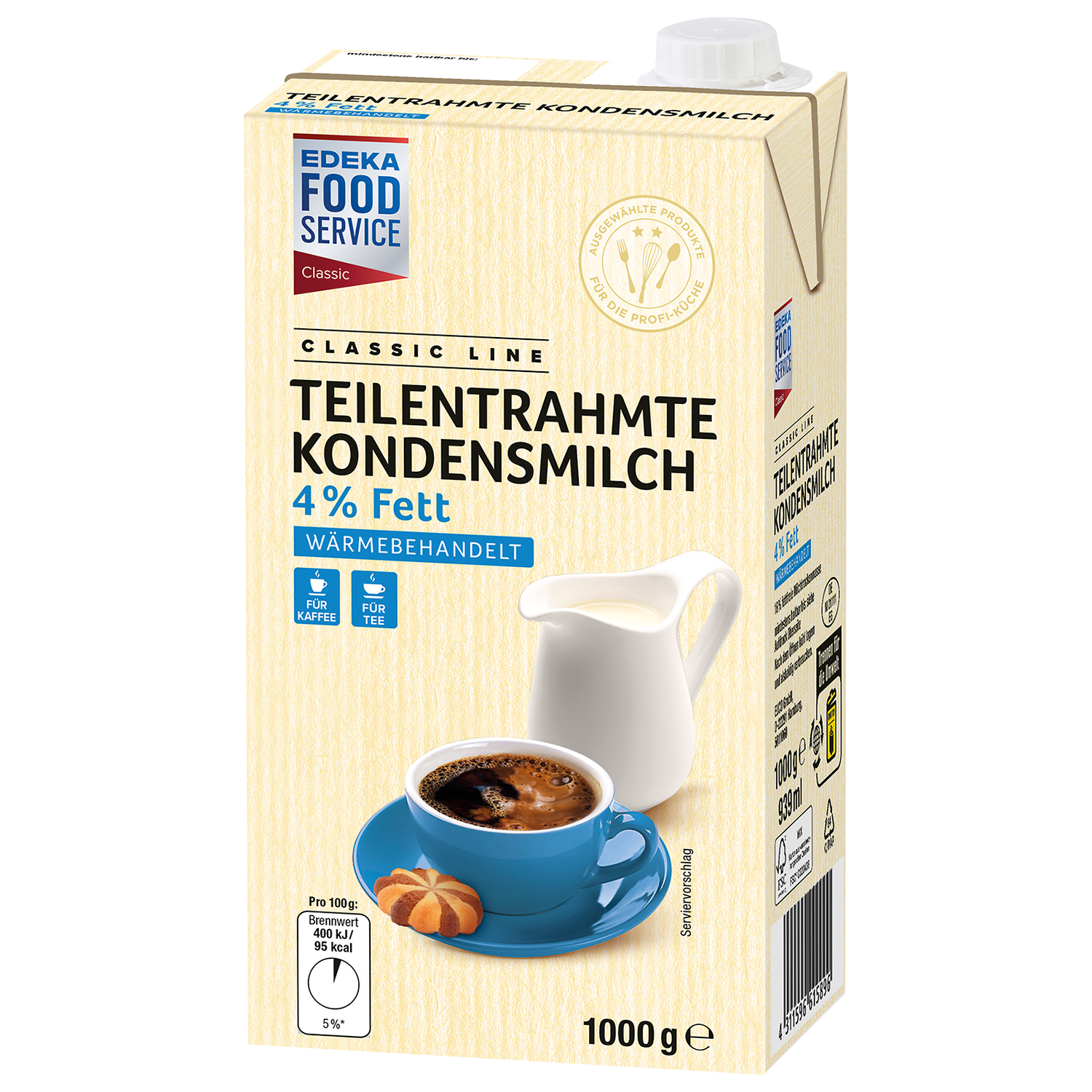 | Verkehrsbezeichnung: | Teilentrahmte Kondensmilch 4% Fett wärmebehandelt |
