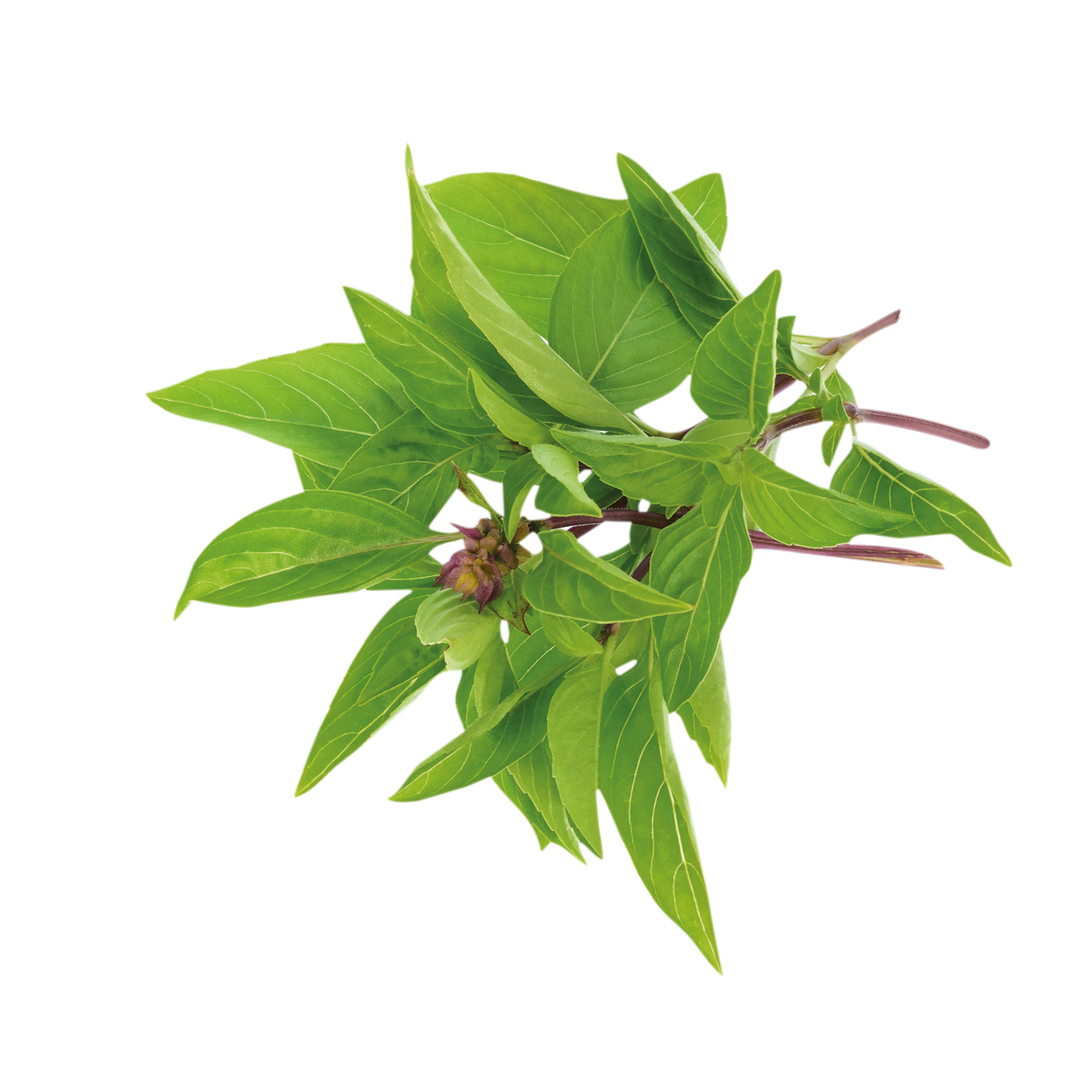 Diese in Thailand erst zum Ende des Garprozesses zugegebene Basilikumvariante schmeckt intensiv nach Anis und Lakritz.