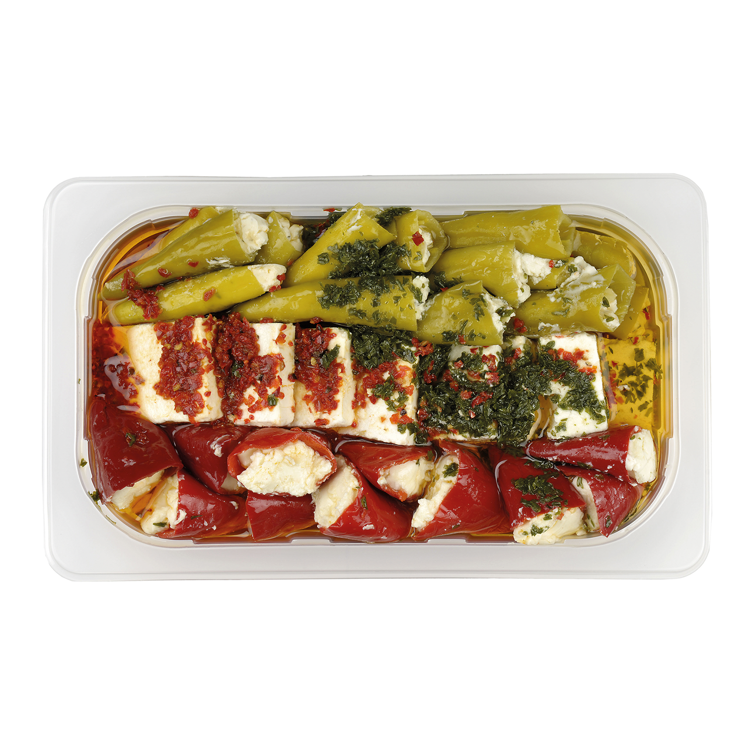 | Verkehrsbezeichnung: | Pompeji-Mix mit Feta g.U. und gefüllte grüne und rote Peperoni |