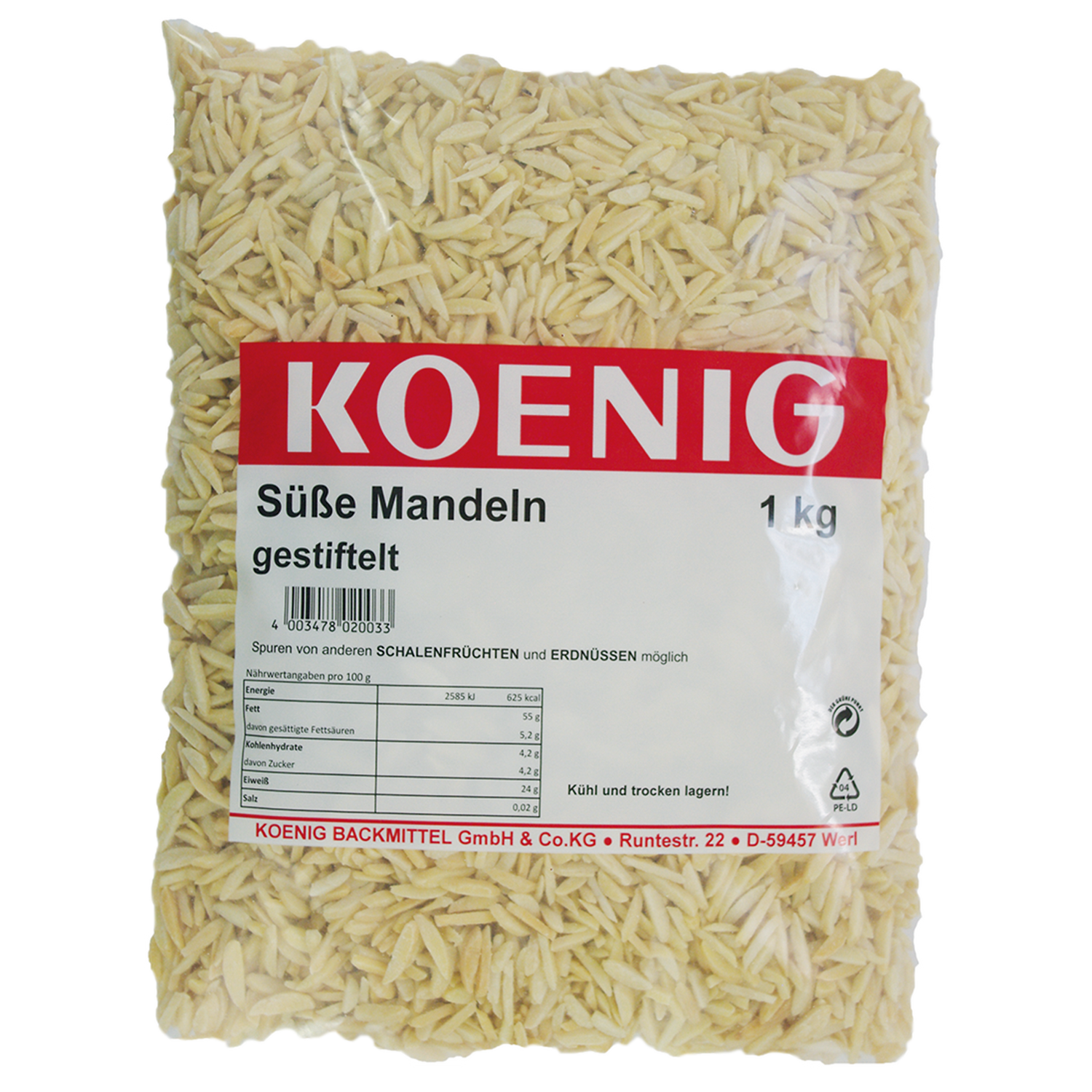 Mandeln gestiftelt 1kg Koenig - Karton à 10 BT ist auf Lager und wird versandt, sobald es wieder verfügbar ist