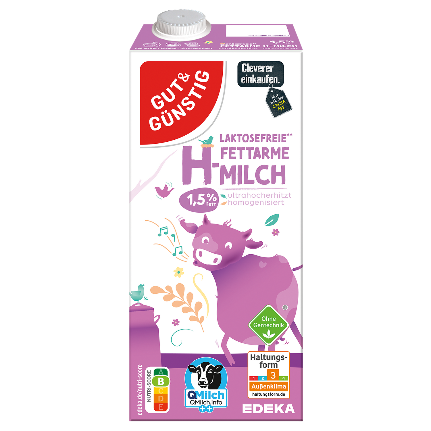 Laktosefreie H-Milch 1,5% Haltungsform 3 1 L G&G