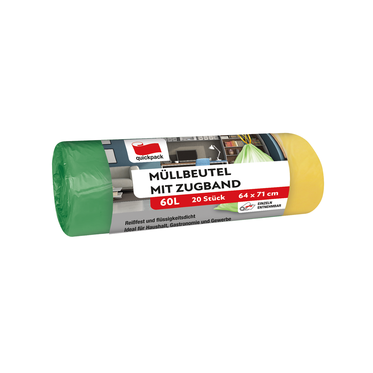 Müllsäcke/beutel mit Zugband grün 60l 20St Quickpack