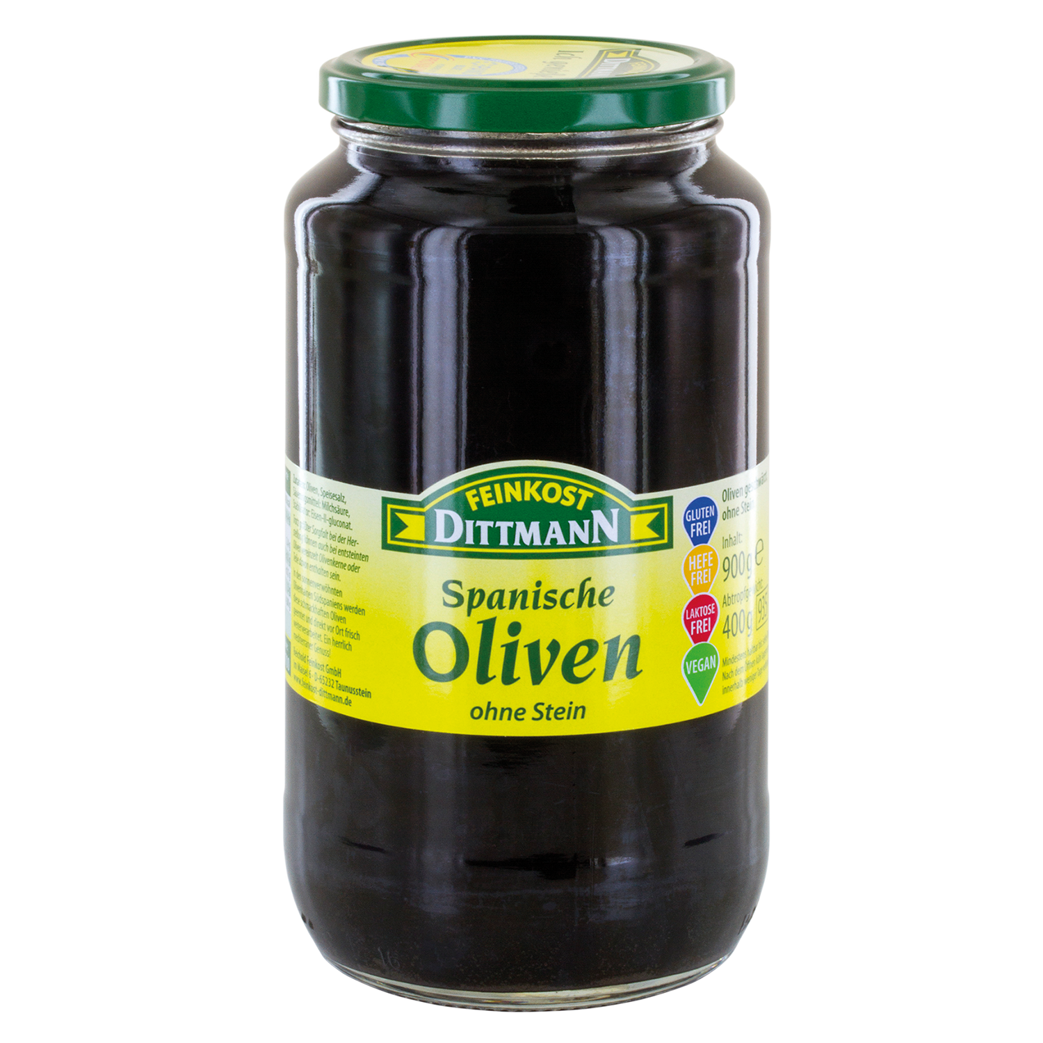 Oliven schwarz ohne Stein 900g/400g Dittmann