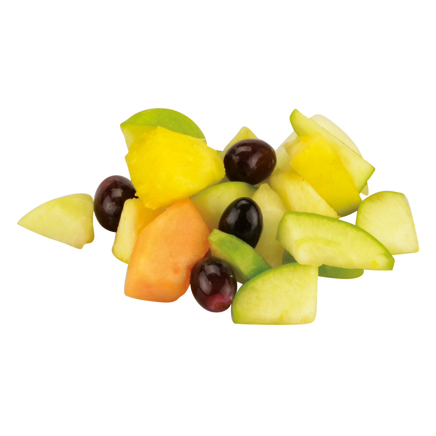 | Zutatenliste | Zutaten: Apfel rot und grün (Antioxidationsmittel: E 302), Ananas, Honigmelone, Traube blau, Cantaloupemelone, Galia Melone, Orange, in unterschiedlichen Gewichtsanteilen. |