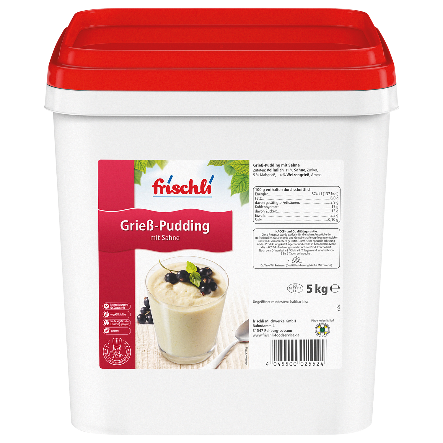 Sahne Pudding Grieß 6% 5kg Frischli