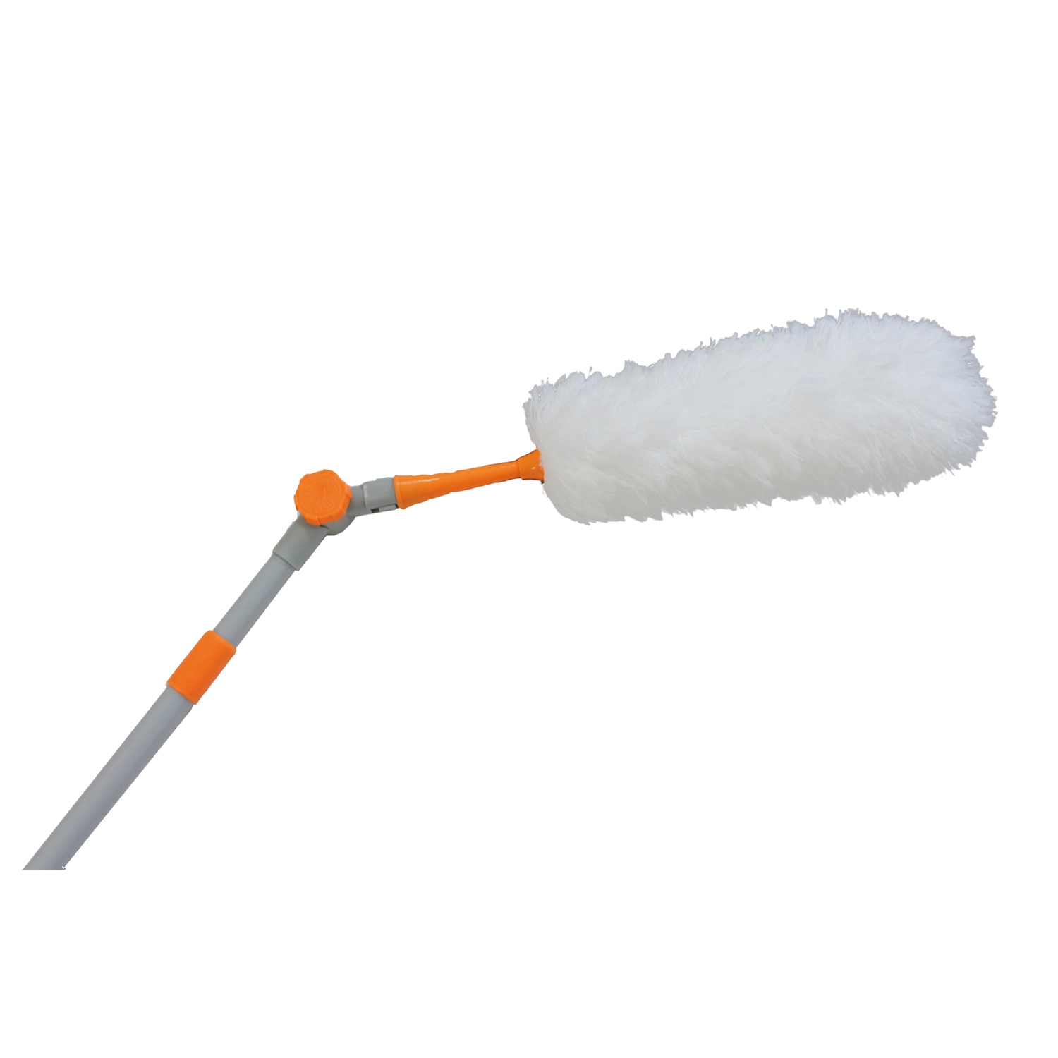 Mikrofaser, stark staubbindend, Winkeladapter frei einstellbar, große Stellschraube, Teleskopstiel bis ca. 135 cm