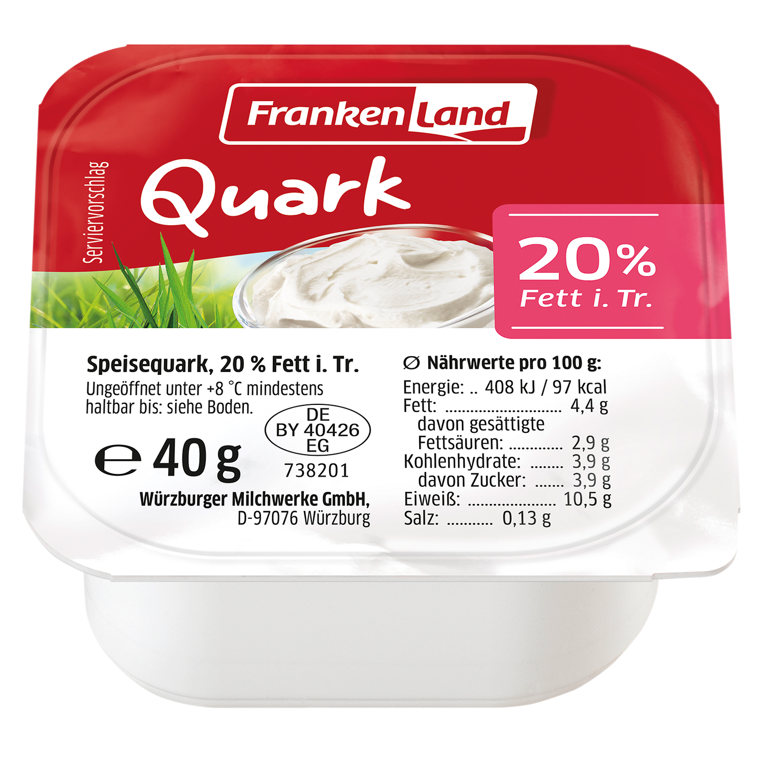 Speisequark Natur 20% 40G Frankenland - Karton ist auf Lager und wird versandt, sobald es wieder verfügbar ist