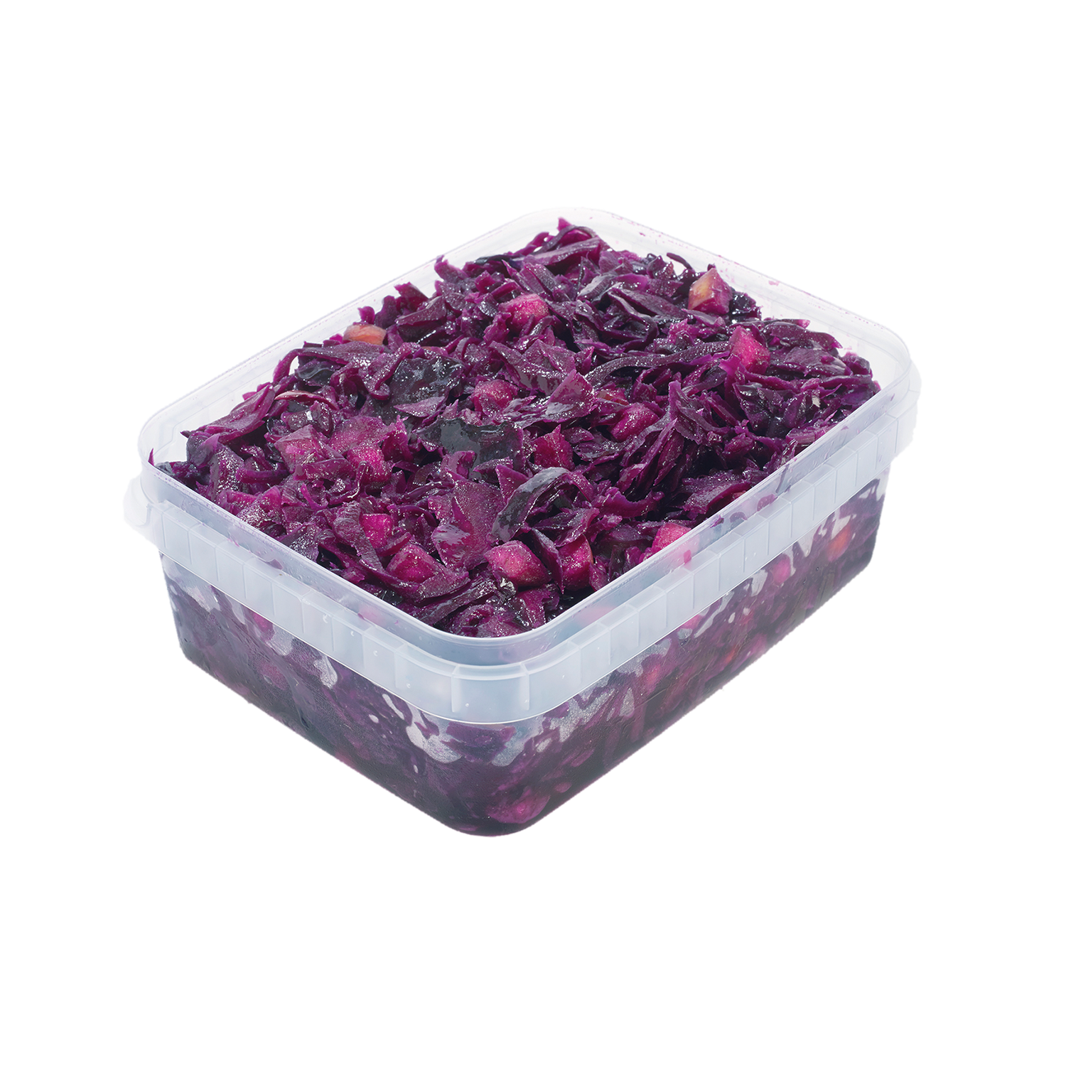 | Zutatenliste | 70% Rotkohl, Invertzuckersirup, Kräuteressig (Branntweinessig, Würze, natürliches Aroma), Rapsöl, Wasser, Apfel (Apfel, Antioxidationsmittel: E302), Salz, Zwiebeln, Säuerungsmittel Zitronensäure, Senf (Wasser, SENFSAAT, Branntweinessig, Salz, Gewürze) |