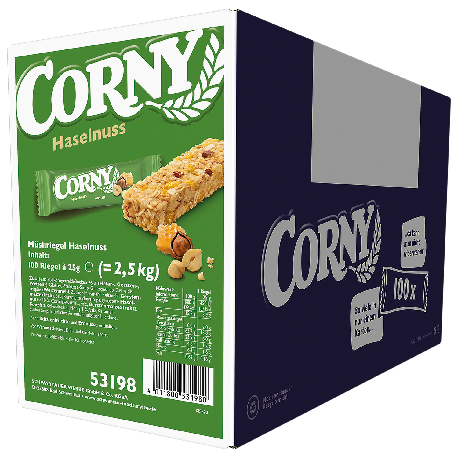 Nussig-Riegel 100x25g Corny - Karton ist auf Lager und wird versandt, sobald es wieder verfügbar ist