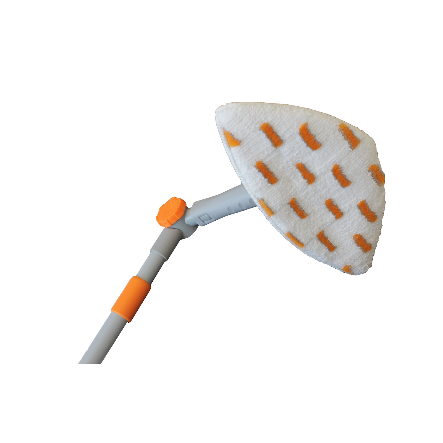 PE-Mikrofaserplüsch mit Reinigungsmonofilen aus PA, Klettverschluß, Winkeladapter frei einstellbar, große Stellschraube, Teleskopstiel bis ca. 135 cm