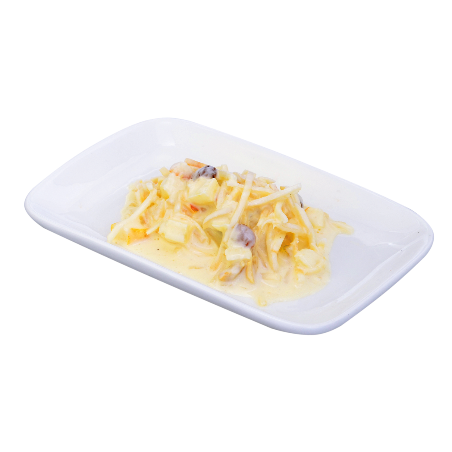 | Zutatenliste | Zutaten: 31% SELLERIE, Äpfel (Äpfel, Antioxidationsmittel: E302), Mayonnaise (Rapsöl, EIGELB, Branntweinessig, SENFSAATEN, Zucker, Salz, Gewürze), MAGERMILCH-JOGHURT, Apfelessig, STAUDENSELLERIE, 4% CASHEWKERNE, Zucker, SAHNE, Salz, Säuerungsmittel: E296, E330, E334. |