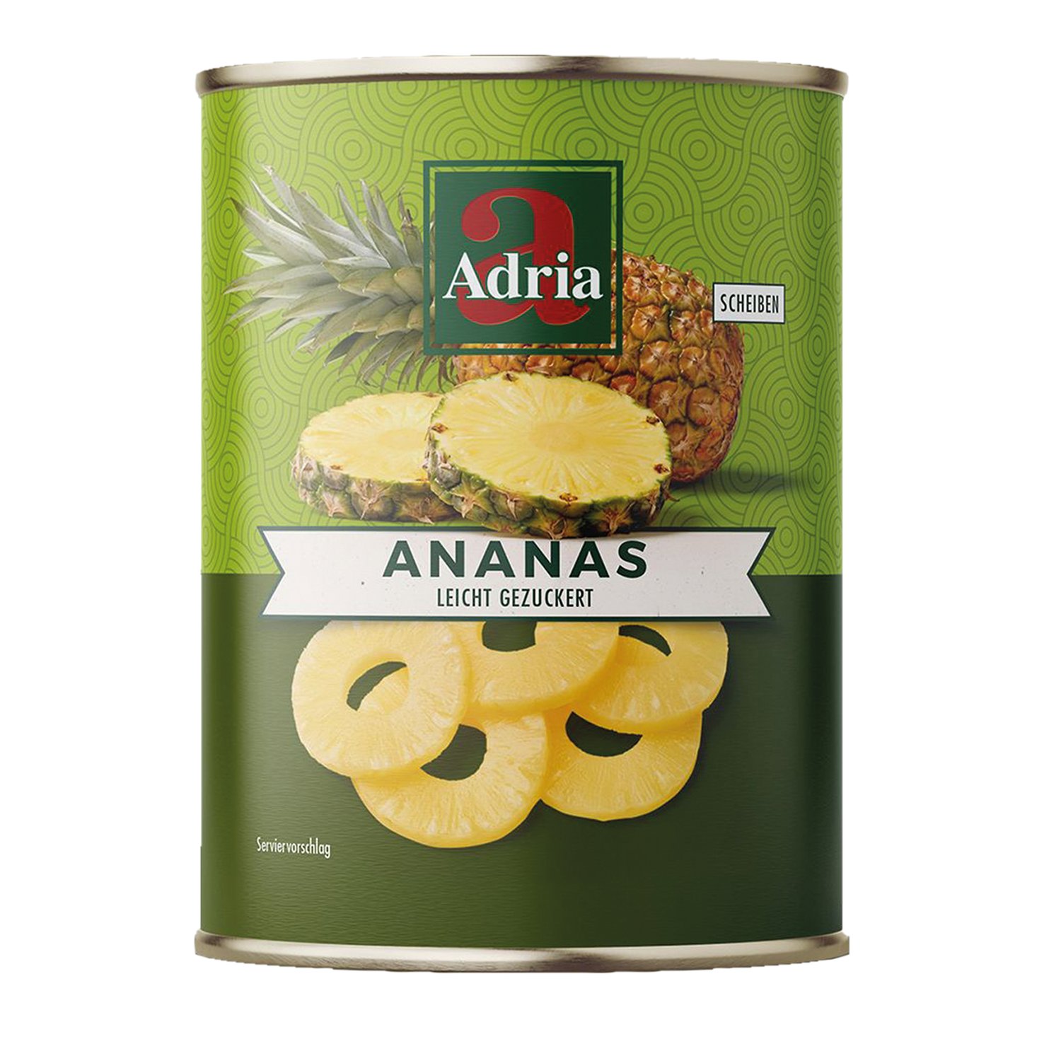 | Verkehrsbezeichnung: | Ananas, Scheiben, leicht gezuckert |