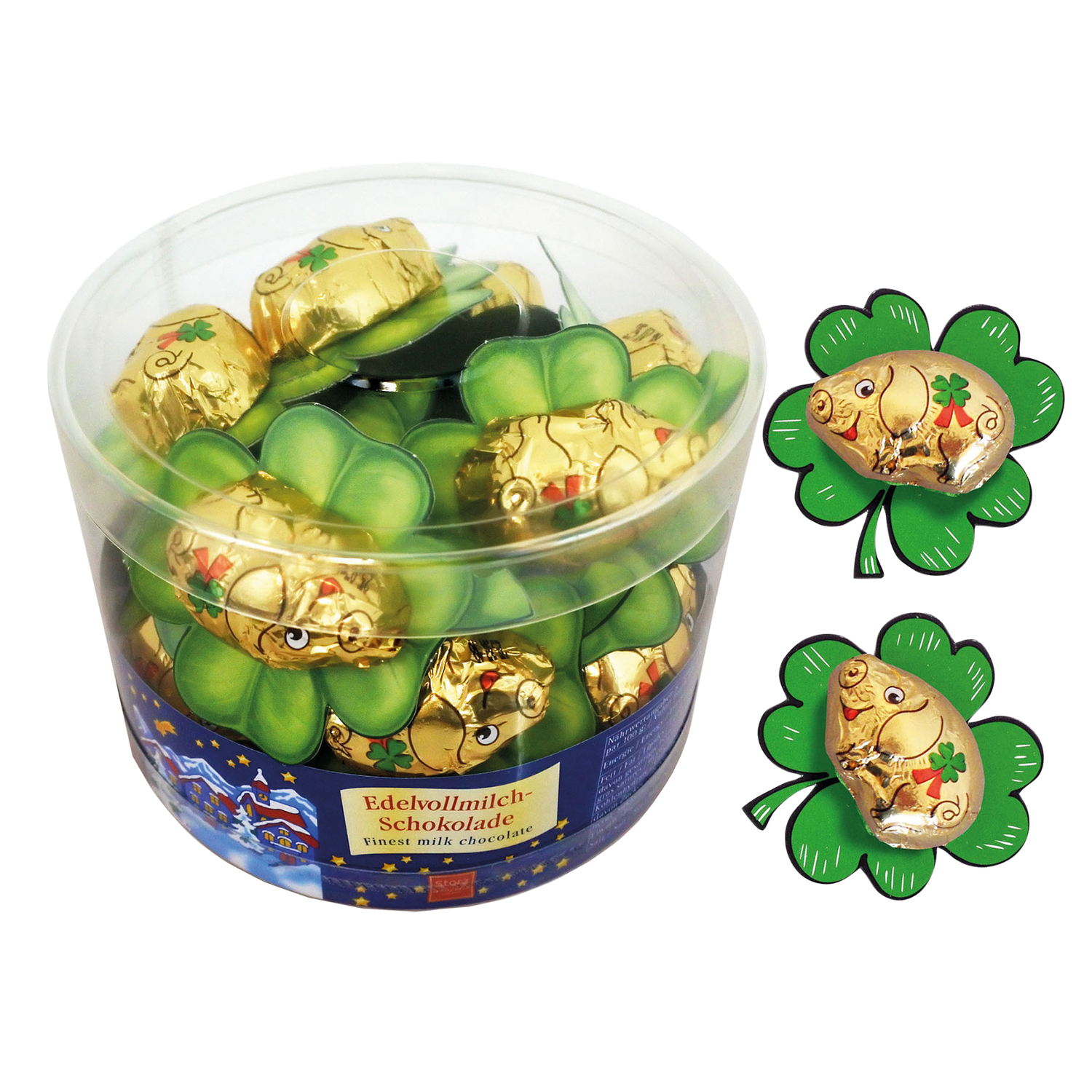 Glücksschweinchen auf Kleeblatt Vollmilch 25x12,5g Storz