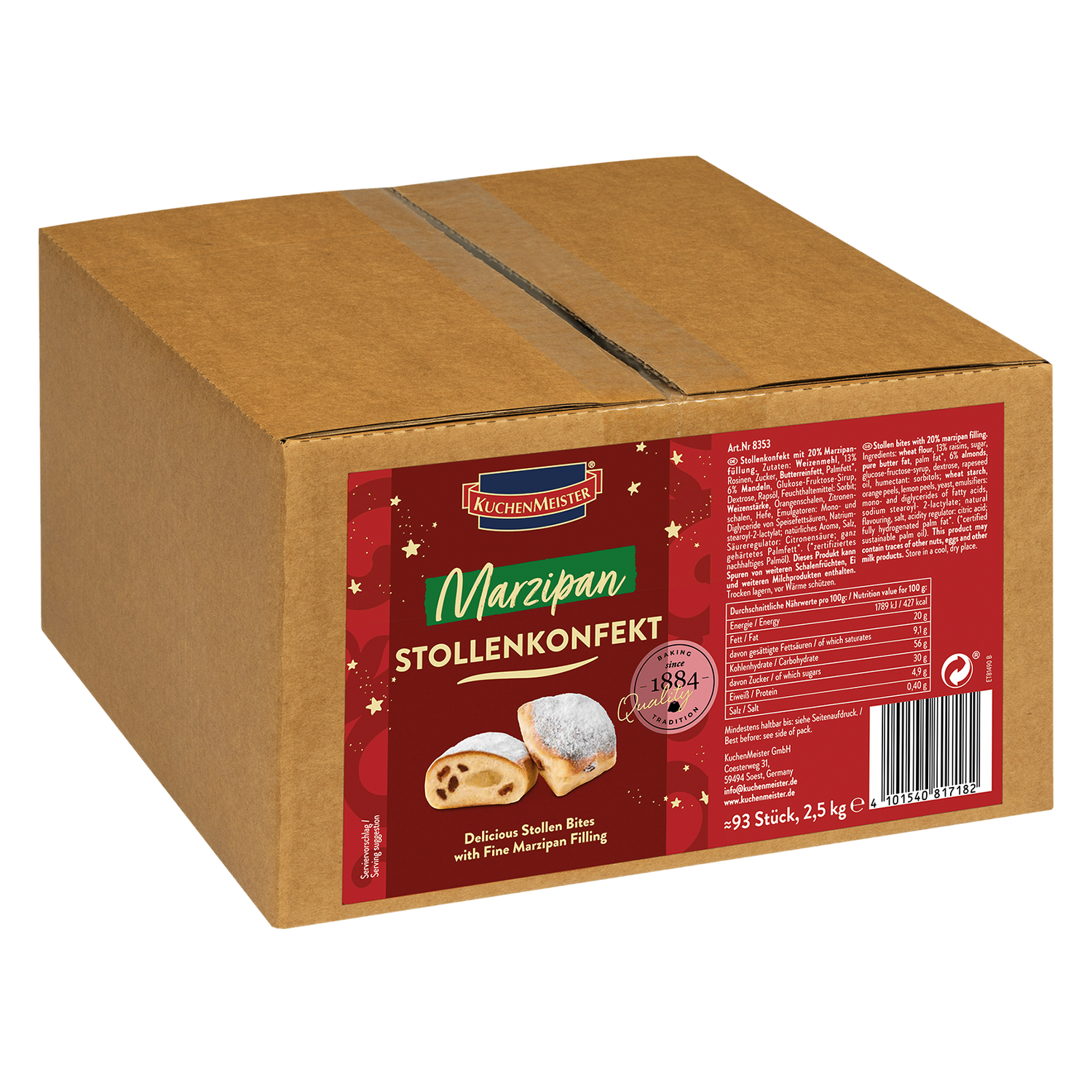 Stollenkonfekt 20% Marzipan 2,5Kg(93x27g) lose Kuchenmeister - Karton ist auf Lager und wird versandt, sobald es wieder verfügbar ist
