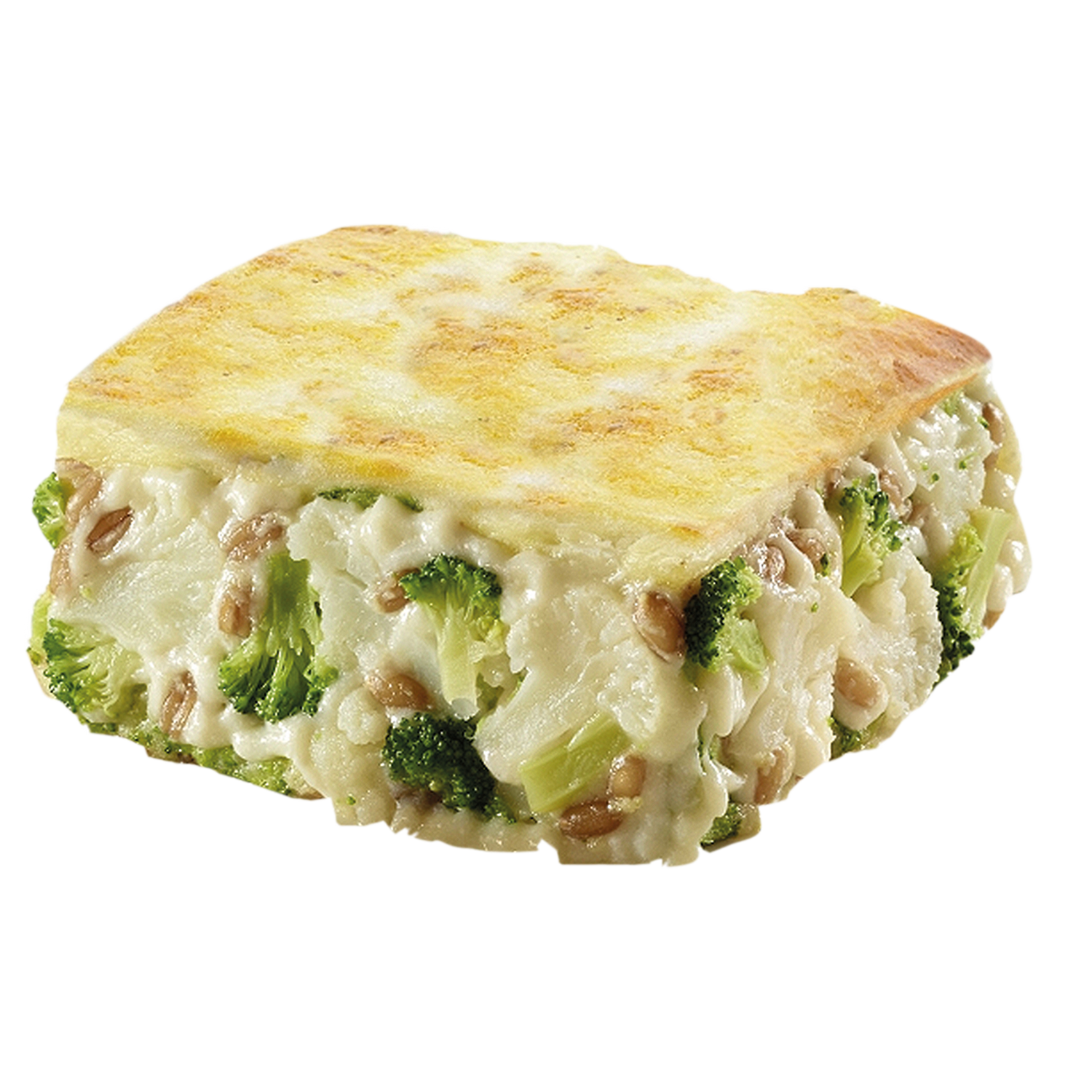 | Verkehrsbezeichnung: | Auflauf aus Broccoli und Dinkel in einer Sauce mit Soja, tiefgekühlt |