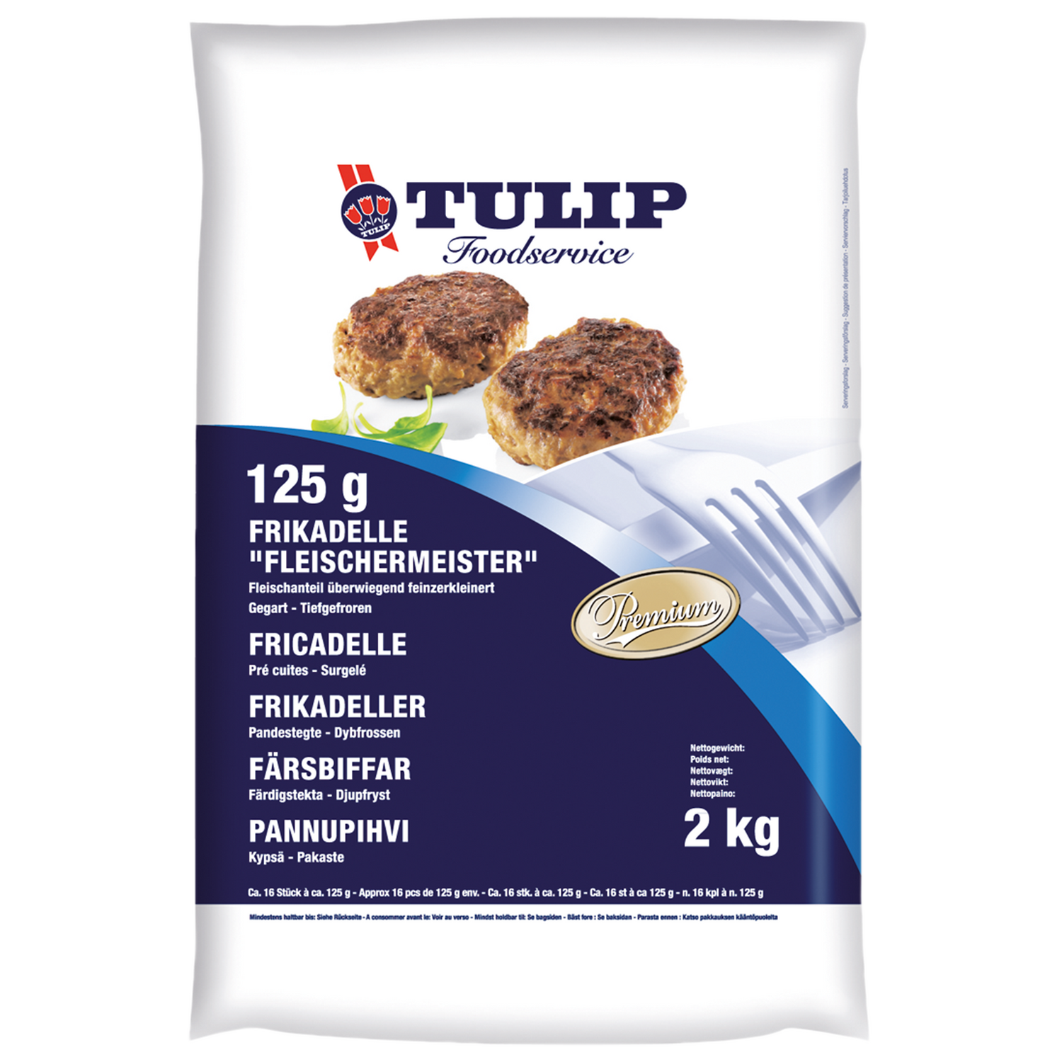 Frikadelle Fleischermeister TK 16x125g Tulip - Karton à 3 BT ist auf Lager und wird versandt, sobald es wieder verfügbar ist