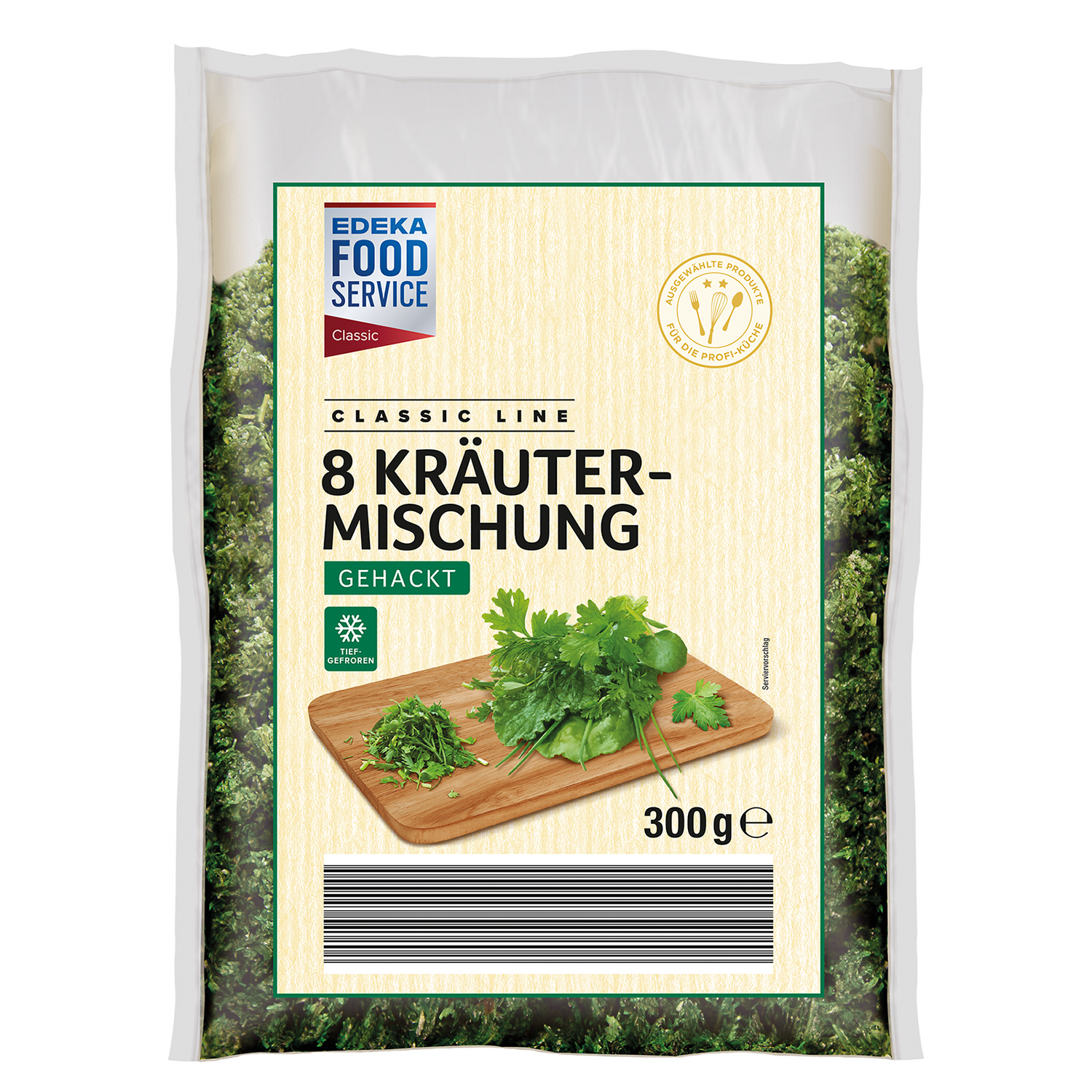 | Verkehrsbezeichnung: | Kräutermischung aus Petersilie, Dill, Kresse, Kerbel, Schnittlauch, Sauerampfer, Rucola und Basilikum, gehackt, tiefgefroren |