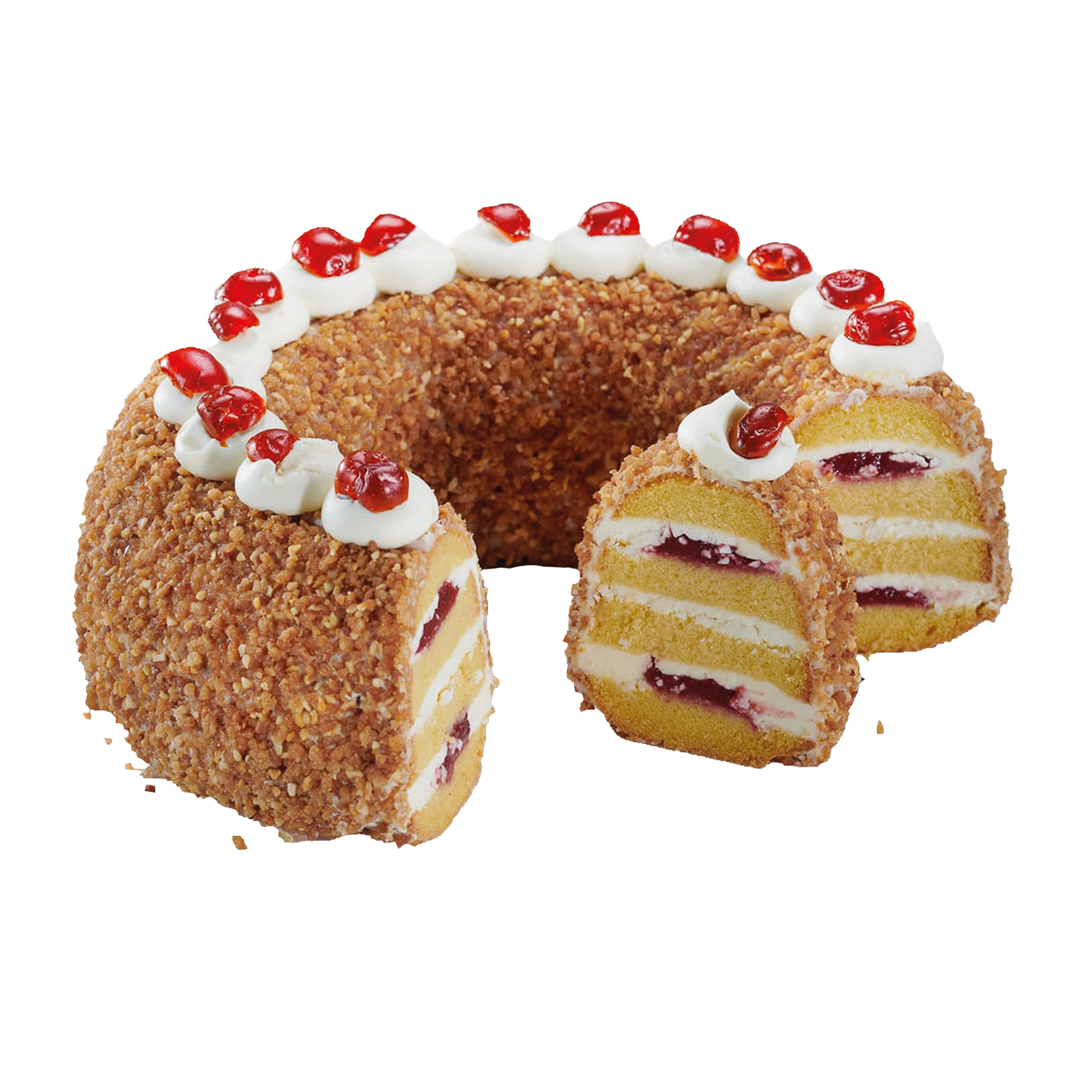 | Zutatenliste | Zutaten: 30,3 % BUTTERCREME (Wasser, 28,3 % BUTTER, Zucker, BUTTERREINFETT, modifizierte Stärke, SÜSSMOLKENPULVER, MAGERMILCHPULVER, Salz, natürliches Aroma, Stabilisatoren (E 516, E 450), Verdickungsmittel (E 401), färbende Pflanzenextrakte (Karotte, Färberdistel)), 12,5 % HASELNUSSKROKANT (Zucker, 20 % HASELNUSSKERNE, Glukosesirup, Zuckerrübenmelasse, pflanzliches Fett (Sonnenblumen)), VOLLEI, Wasser, WEIZENMEHL, Zucker, Pflanzenfettcreme (Zucker, pflanzliches Öl (Raps), pflanzliches Fett (Palm), MAGERMILCHPULVER, Emulgator (E 322), natürliches Aroma), 4,1 % rotes Johannisbeerpüree, 4,1 % Himbeerpüree, Invertzuckersirup, Stärke (WEIZEN), Belegkirschen (Kirschen, Glukose-Fruktose-Sirup, Zucker, Zitronensaftkonzentrat, färbende Pflanzenextrakte (Karotte, schwarze Johannisbeere, Rettich)), Feuchthaltemittel (E 420), HÜHNEREIEIGELBPULVER, pflanzliches Öl (Raps), Reismehl, Stabilisatoren (E 410, E 440, E 412, E 406), Emulgatoren (E 475, E 433), Säureregulator (E 331), Backtriebmittel (E 500), natürliches Aroma, färbendes Pflanzenkonzentrat (schwarze Karotte), Säuerungsmittel (E 330). |
