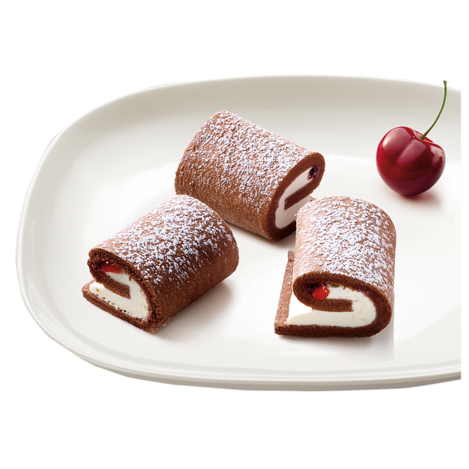 | Verkehrsbezeichnung: | Kakaohaltige Biskuitröllchen mit 43 % Füllung mit Sahne und 7 % Kirschzubereitung sowie Dekor-Zucker, tiefgefroren. |