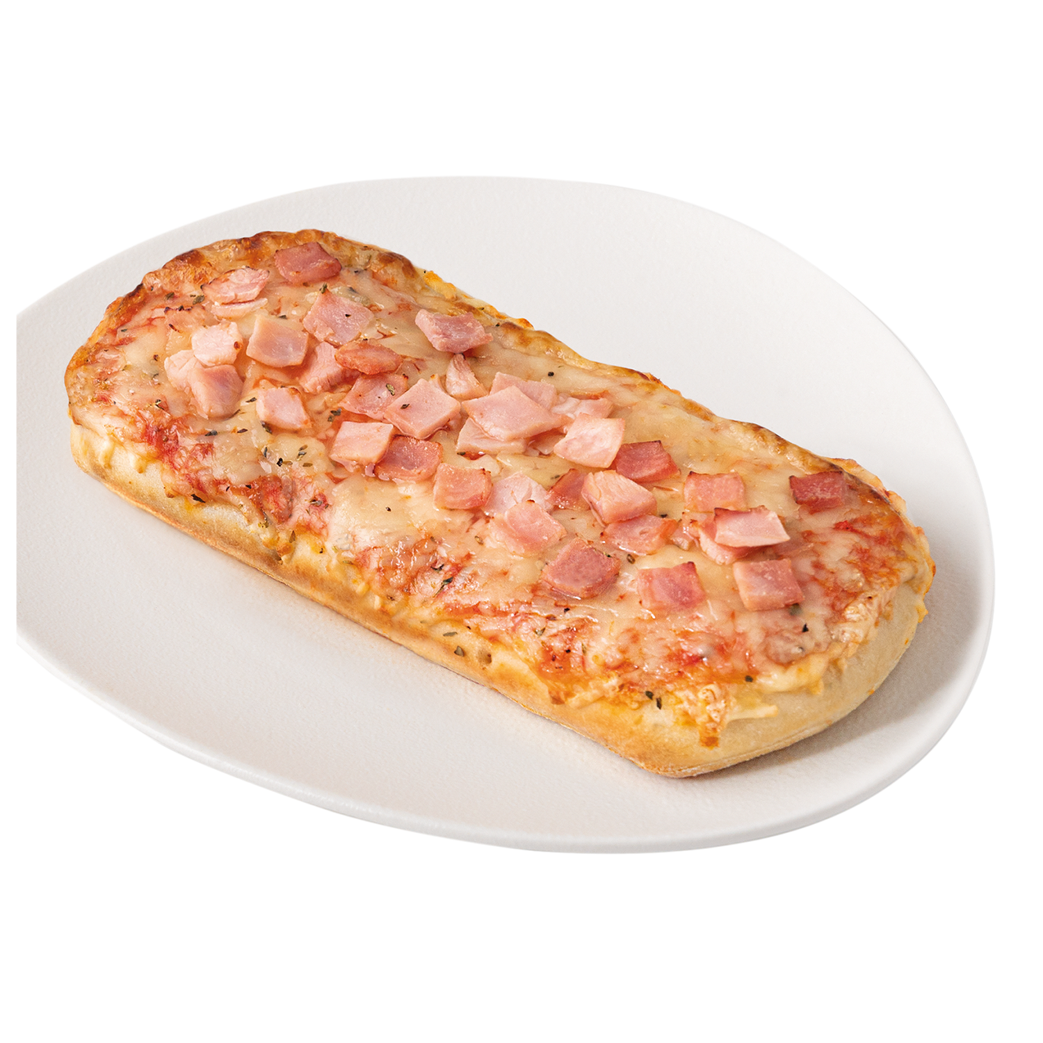 | Zutatenliste | Zutaten: WEIZENMEHL, 19% KÄSE (schnittfester MOZZARELLA, EDAMER), Wasser, 13% Tomatenpüree, 8,1% gekochter Hinterschinken (Schweinefleisch, Wasser, Salz, Dextrose, Stabilisatoren (Diphosphate, Triphosphate, Natriumnitrit), Antioxidationsmittel (Natriumascorbat), Gewürzextrakte), Rapsöl, Hefe, Salz, Zucker, natives Olivenöl extra, Oregano, Knoblauch, Basilikum, Pfeffer, Zwiebeln, Röstzwiebeln. Kann enthalten: SOJA, SENF. |